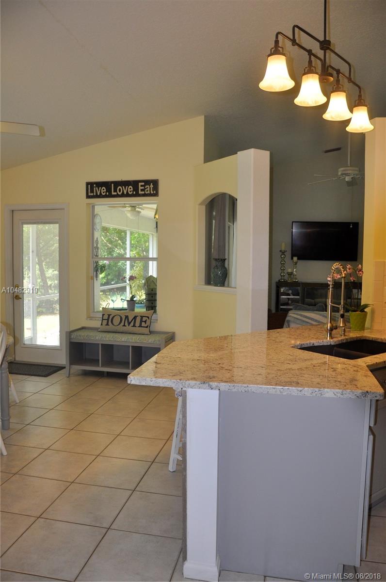 BEAUTIFULLY UPDATED 3/2/3 SPLIT FLOOR PLAN! HOME IS OF SOLID CONCRETE BLOCK CONSTRUCTION. STUNNING LARGE EAT IN KITCHEN WITH GRANITE AND STAINLESS STEEL APPLIANCES. OVER ONE ACRE OF LAND! THREE CAR GARAGE. OPEN FLOOR PLAN WITH VAULTED CEILINGS. ROMAN SOAKING TUB IN MASTER WITH ADDITIONAL WALK IN SHOWER. TWO WALK IN CLOSETS IN MASTER. TROPICAL, LUSH, PRIVATE YARD WITH IRRIGATION SYSTEM. BACK YARD HAS LARGE POND FILLED WITH FISH AND TURTLES. INCLUDED IS A DOCK AND 8' DINGHY. DESIRABLE SCREENED PATIO TO ENJOY THE SERENE YARD / POND. FURNITURE AND ACCESSORIES ARE OPTIONAL. ALL ROOM SIZES ARE APPROXIMATE.