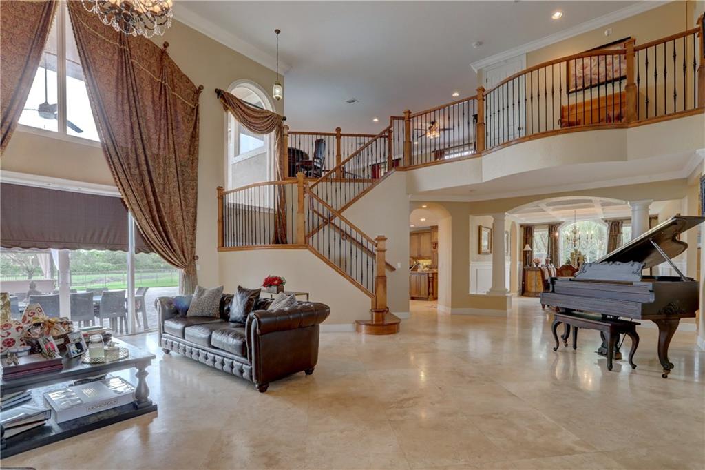 Move in ready 6/5.5 + huge loft t in Long Lake Ranches. Soaring Ceiling and gorgeous marble flooring in the living areas. Updated kitchen featuring granite counters, wood cabinets, S/S appliances, and breakfast nook that opens to the spacious family room. Large master suite w/sitting area, wood floors, walk-in closet, and grand master bath. Big secondary bedrooms with wood flooring, and 2 that have en-suites. Amazing pool area with summer kitchen, and beautiful views of the sunsets overlooking the water. Home is located next to the clubhouse.