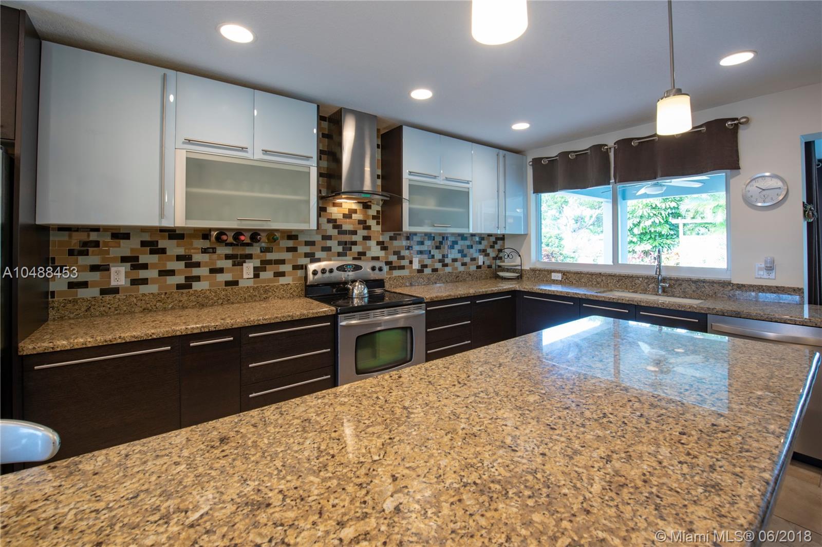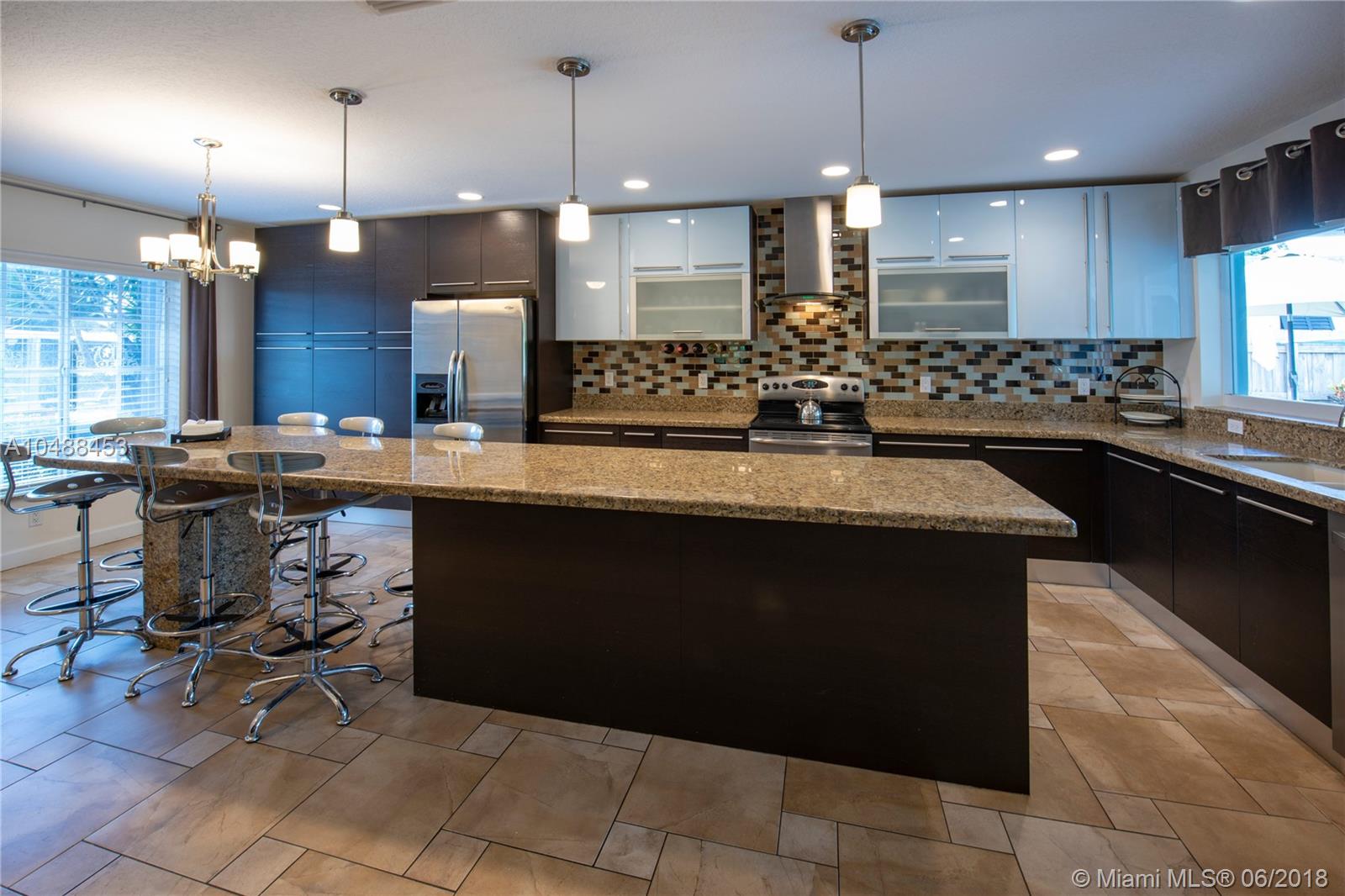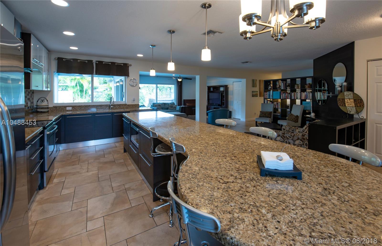 Stunning one of a kind 4/2 custom remodeled waterfront pool home with circular driveway. Beautiful interior is fully renovated with open floor plan, high-end amenities, tile, 5” baseboards, updated lighting & knock down finishes throughout. Features include large kitchen, custom Astra Italian cabinets, newer stainless steel appliances, granite, custom laundry room with new w/d. Bathrooms are beautifully renovated with custom vanities, tile, lots of storage & glass enclosures. Master bedroom leads to beautifully landscaped private pool area, hot tub, lots of storage with walk-in closets. Best schools within walking distance. No HOA. Lovely Neighborhood Park with playground & dog park. Just doesn’t get better than this!