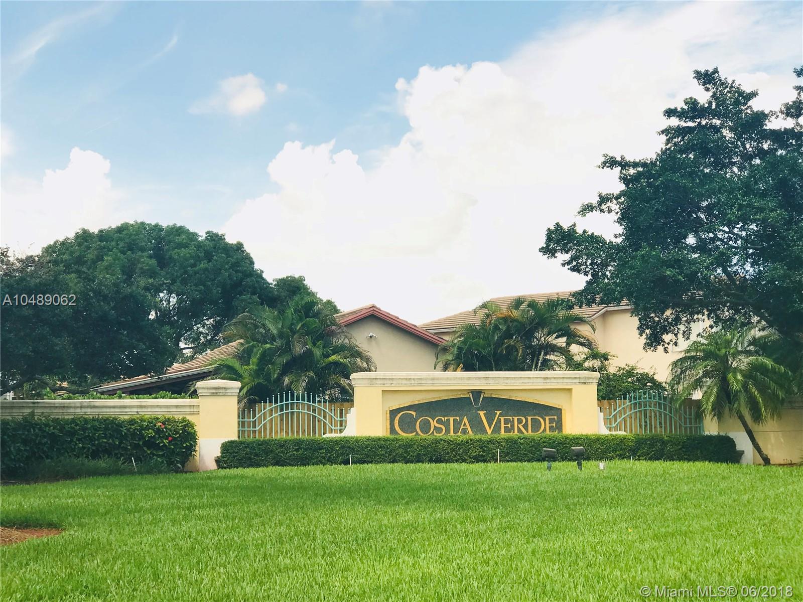 Costa Verde is the perfect family home, gated community surrounded by trees. Single family home, bright open spaces with Open Kitchen, spacious family room, high ceilings, huge backyard, fence and nice landscaped garden area, perfect for kids play activities. Open Floor plan, split bedroom plan 3/2 with car garage. Low maintenance fee, gated Community. Perfect Doral Location.