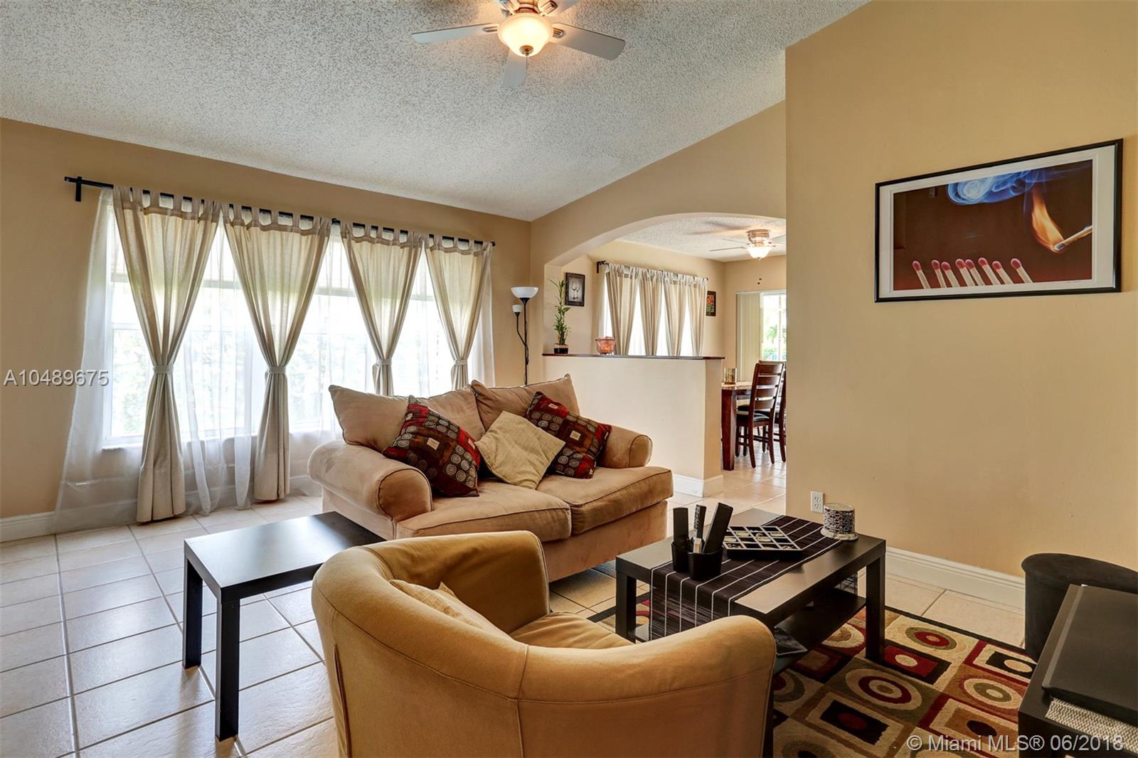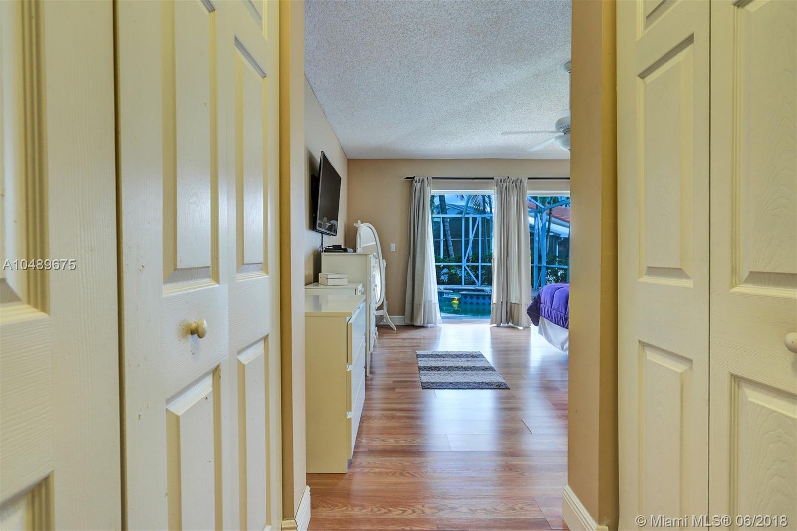 Back on the market! What a beauty! This one story pool home features a bright and open floor plan, tiled floors throughout the living area, gorgeous kitchen with a view of the pool area, a large island, Granite counter tops, Stainless Steel appliances and wood cabinets . Large Master bedroom with vaulted ceilings, large walk- in closet and access to the pool area. Private backyard with dome screen, beautiful pool with elevated Jacuzzi and a large yard area. Laundry room, AC recently replaced, hurricane panels, very low HOA fees. This home will not last!