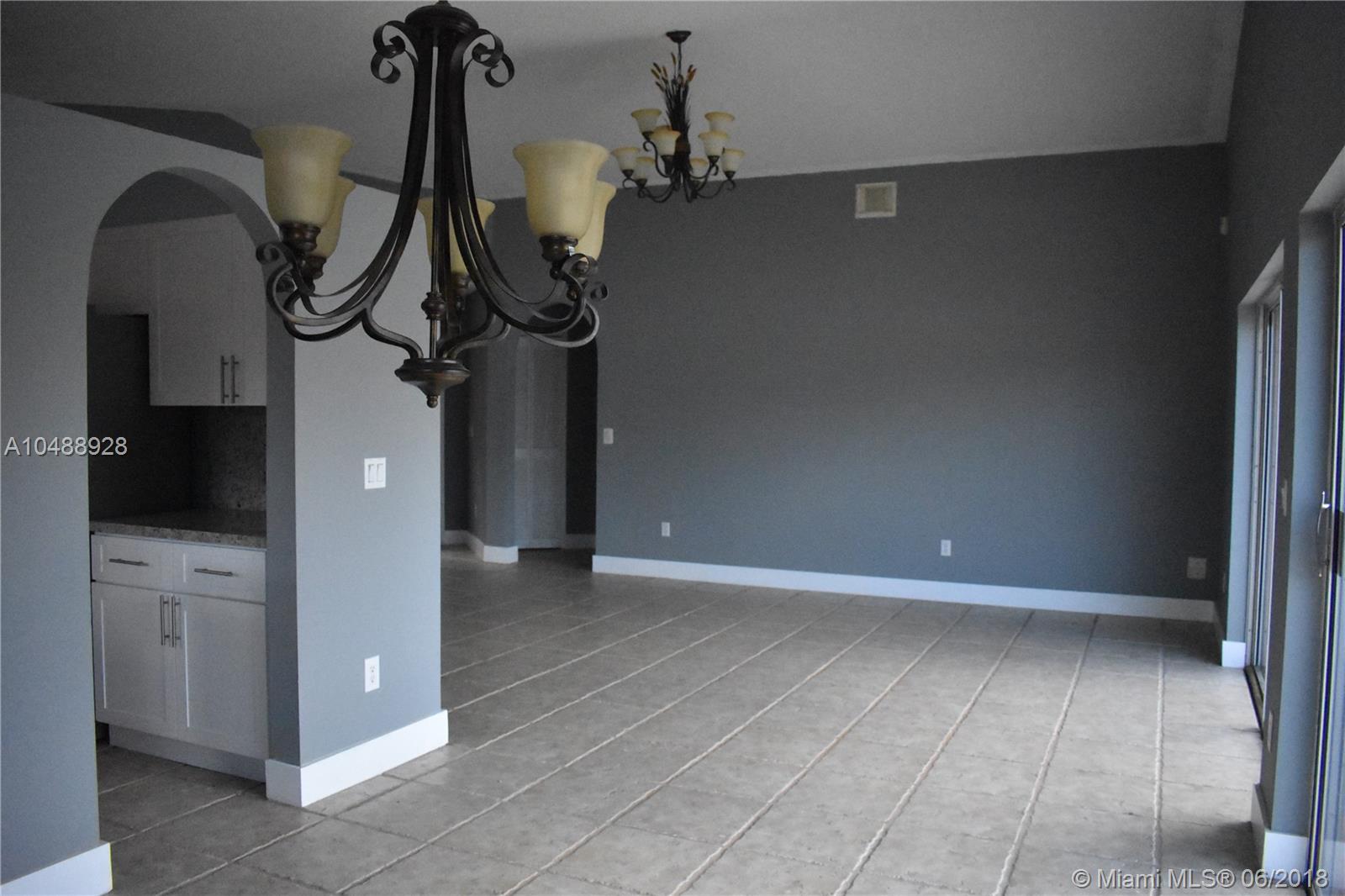 Fabulous corner house! Completely remodeled Kitchen and Bathrooms. Just painted. Ample tiled living areas with huge Living Room and a formal Dining Room area. Kitchen: Brand new stainless steel appliances, granite countertops and brand new modern style wood cabinets. This kitchen looks onto a comfortable family room area. Good size Master Bedroom with a just beautifully renovated Master Bathroom. Split bedroom design. Second and third bedrooms have new tiles. Second bathroom also completely renovated. House has Accordion Shutters all around. Ready to Move In!