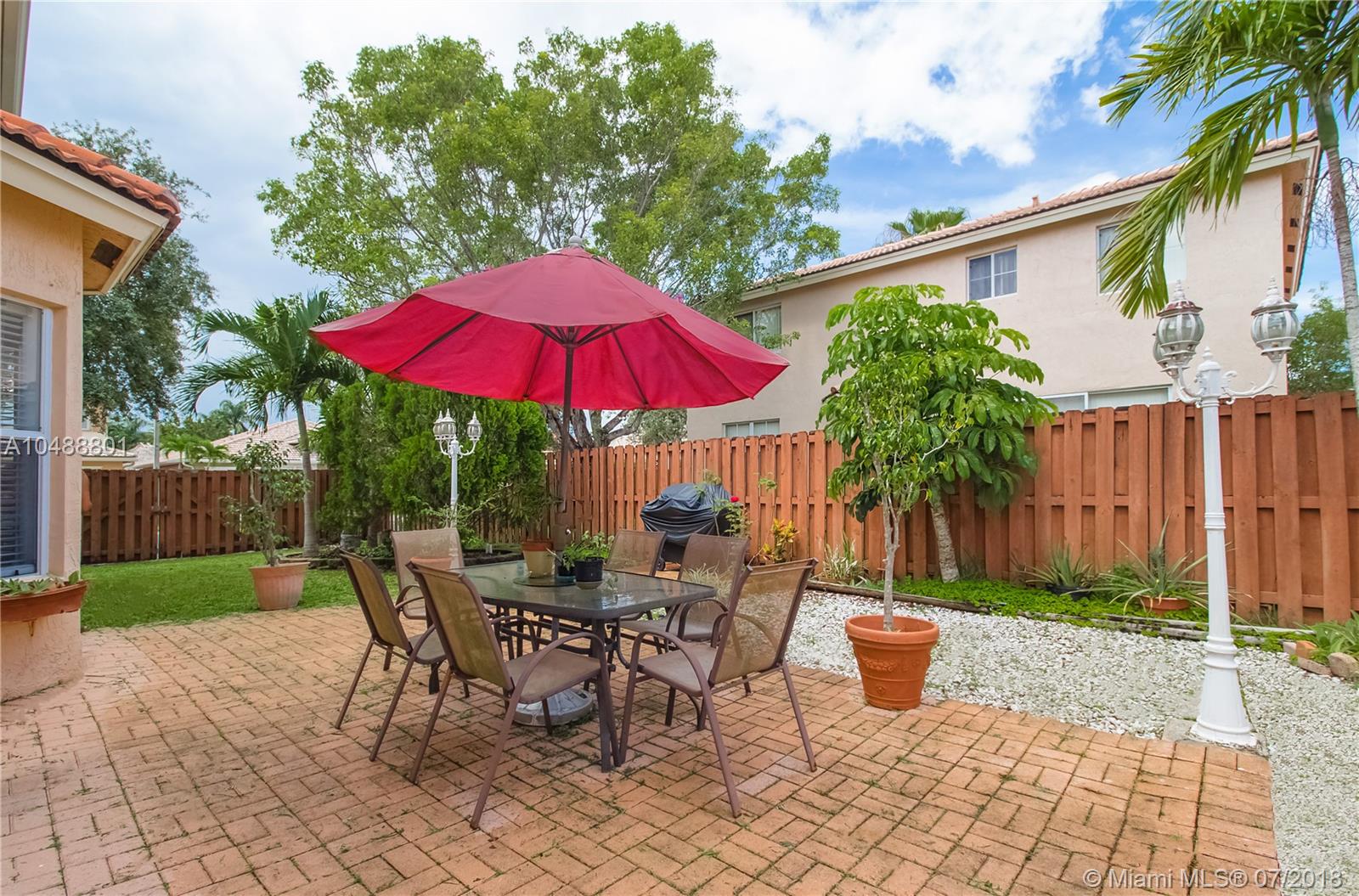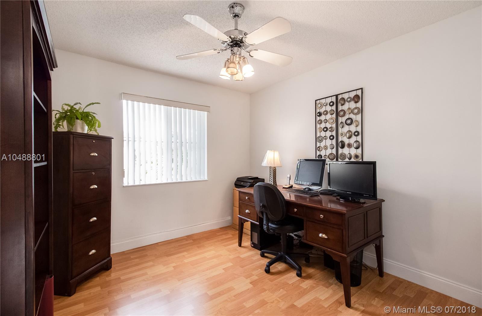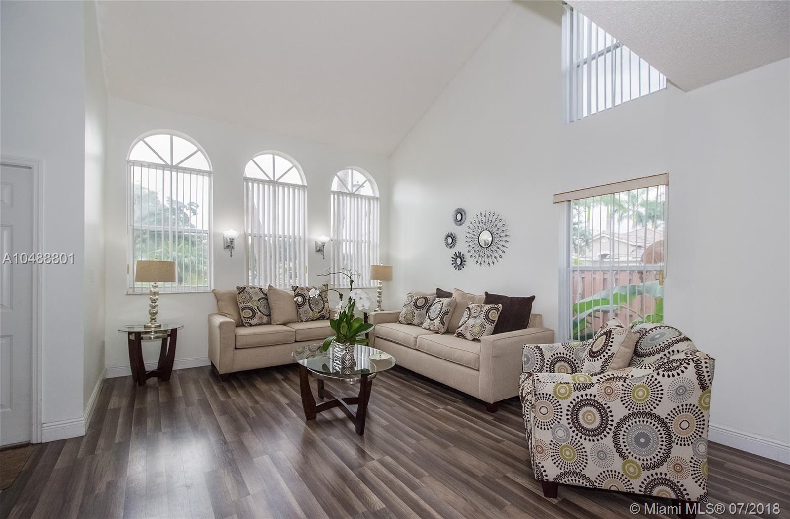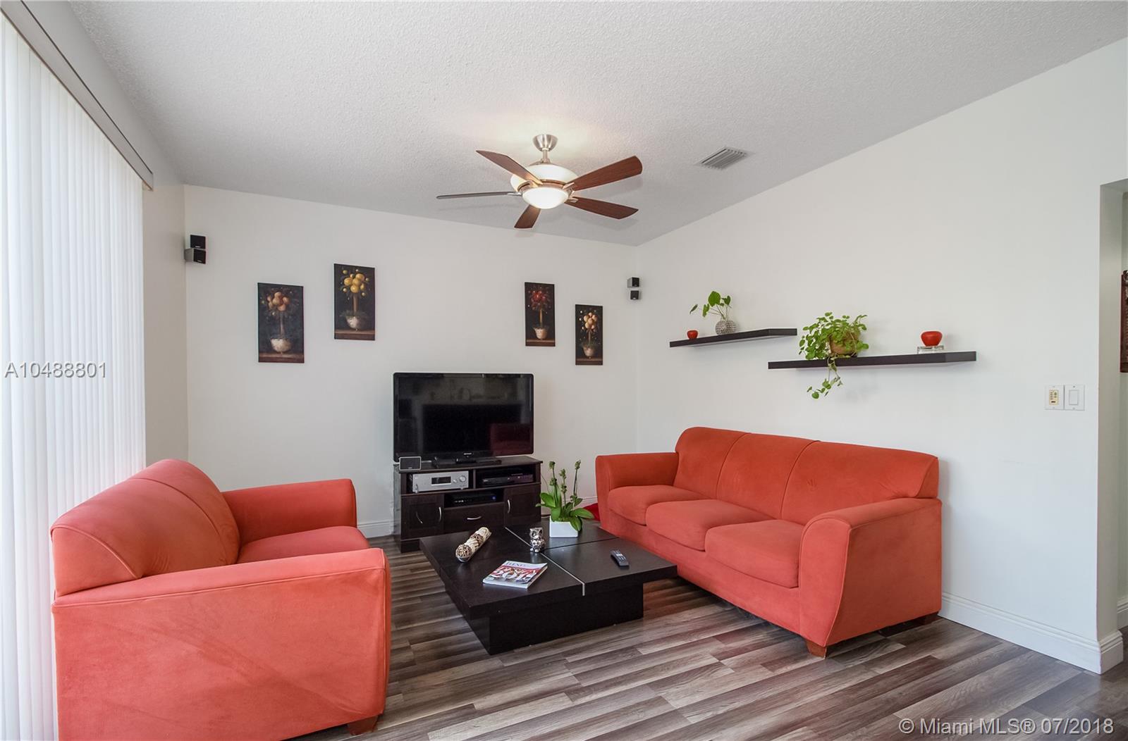 This gorgeous 4/3 in a gated community in Davie is ready to go!!! Renovated less than 3 years ago, property boasts wood kitchen cabinets with Carrara Quartz counter top and back splash, stainless steel appliances, laminated floors in first and second floor, accordion and panel shutters, gutters and paved patio. Very spacious floor plan that includes living, dining, 1 bedroom and 1 bath, breakfast area and family room on the first floor and 3 bedrooms/2 baths on the second floor. BB-Q Area, for memorable family gatherings. Small family oriented community. Good school system. Centrally located with 5 minutes access to I-595, I-75 and Sawgrass expressway. 20 minutes away from Ft Lauderdale airport and 25 minutes to FLL beaches. Low association fee. As-Is.