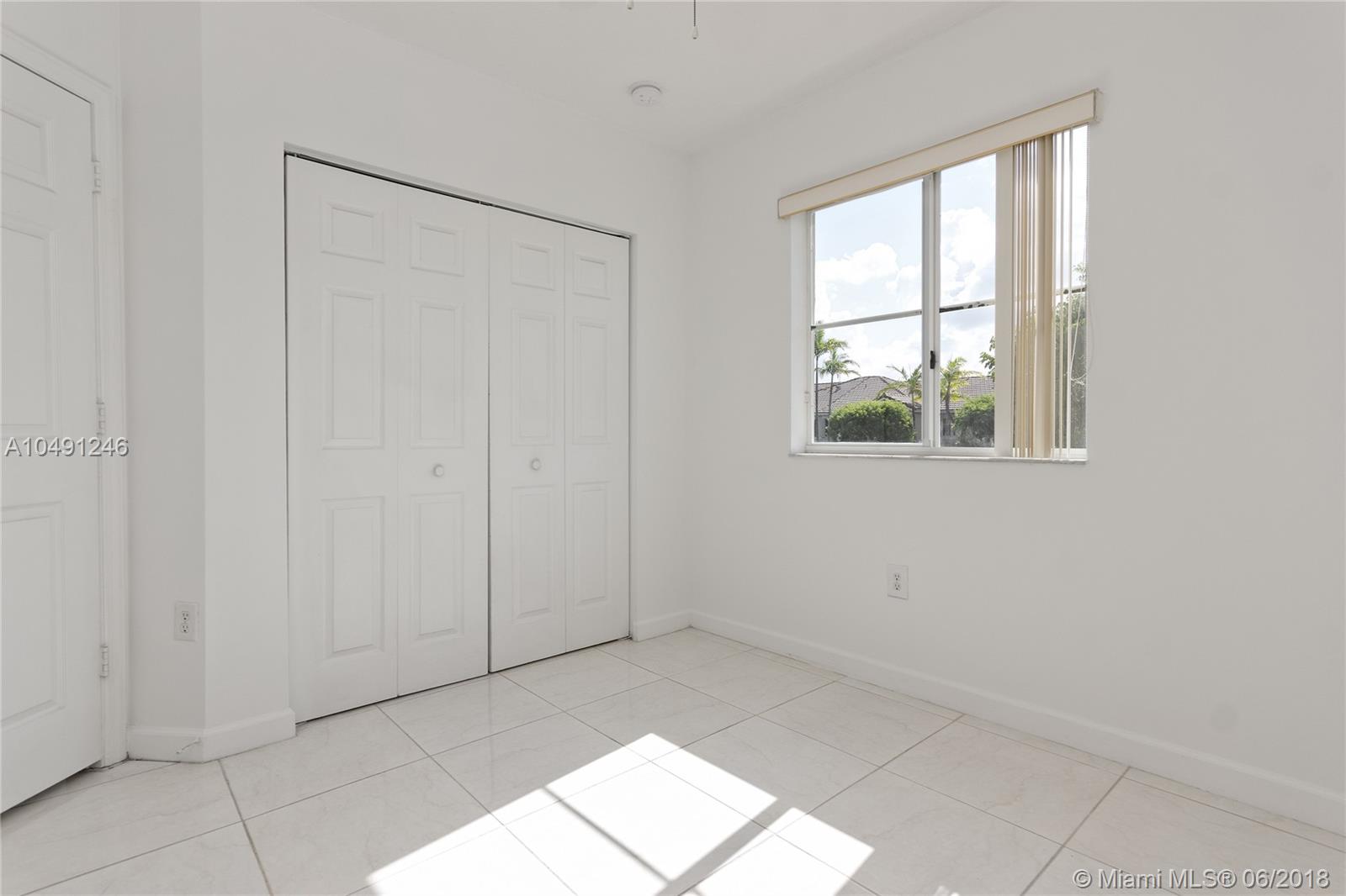 Amazing and spacious 4/3.5 townhouse in family and safe community in Sonoma at Doral. Excellent conditions, well kept, and filled with spectacular natural light. The living and dining is an open space. Ceramic floors throughout. The master room has a bath with shower, roman tub and walk-in closet. An additional room with a complete bath is a plus! LOW monthly association fee. Very well located with easy access to main highways. Walking distance to A+ public schools, and also to free Doral Trolley stop. Easy to show by appointment only. At this price it won't last!