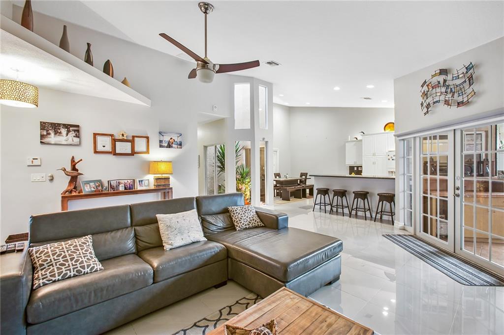 Don't miss out on this great opportunity to own this beautiful fully renovated 2-Bed, 2-Full Bath + den"office". Open concept kitchen/dining area, great room, vaulted ceilings, porcelain floors and granite throughout. Many new appliances upgraded, M-Bath, spa tub/shower with glass door, double sink. Hallway-Bath single sink and tub/shower. Screened & covered patio w/dry-bar, backyard paved patio fenced in. Accordion Shutters, Full house salt-free water filtration system *tank-less water heater.