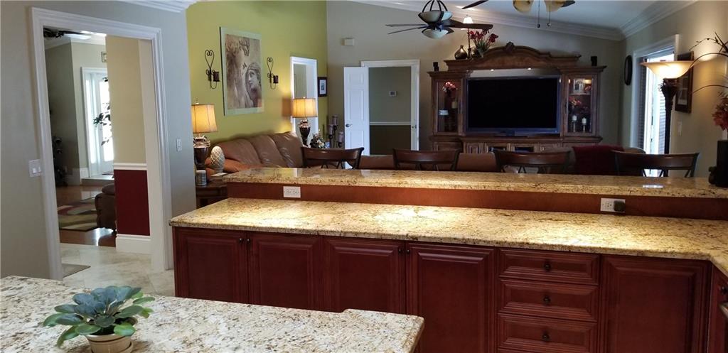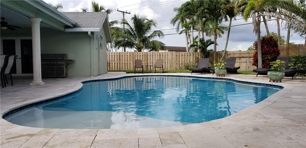 Impeccably upgraded. Beautiful custom designed kitchen cabinetry, undercabinet lighting-soft close drawers/cabinet doors, stainless steel appliances, granite countertops. Crown molding, upgraded baseboards & window casings/door trim throughout. Gorgeous 20” groutless tile. Tastefully selected wood laminate. Newer washer/dryer, & AC units. Captivating nicely landscaped backyard paradise. Large freeform heated pool, seemingly endless Travertine decking/walkways, covered patio with sun shades and a Tiki Hut.