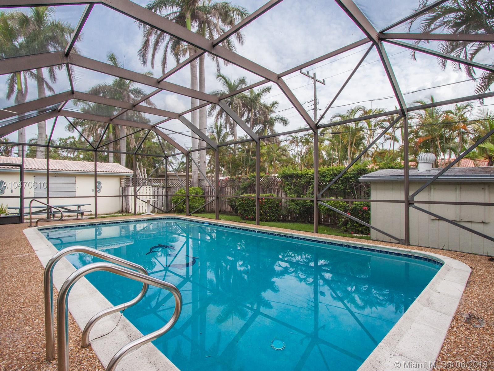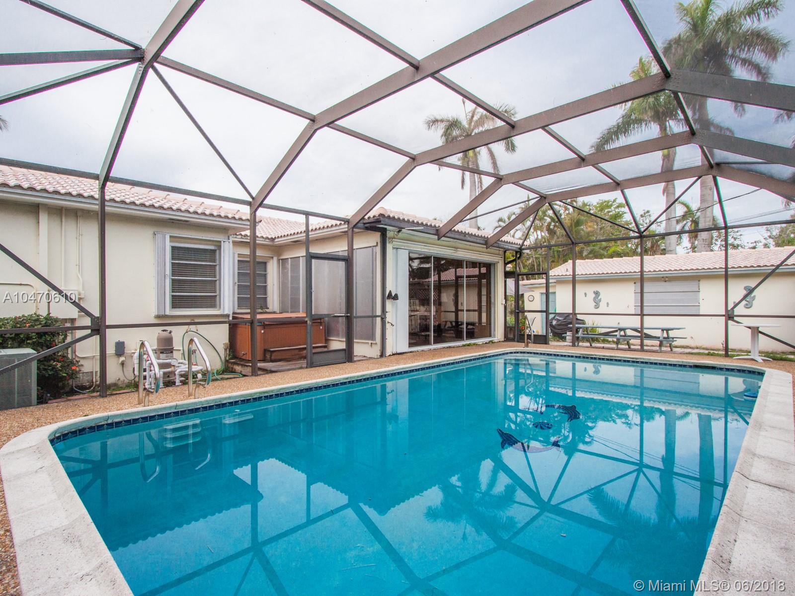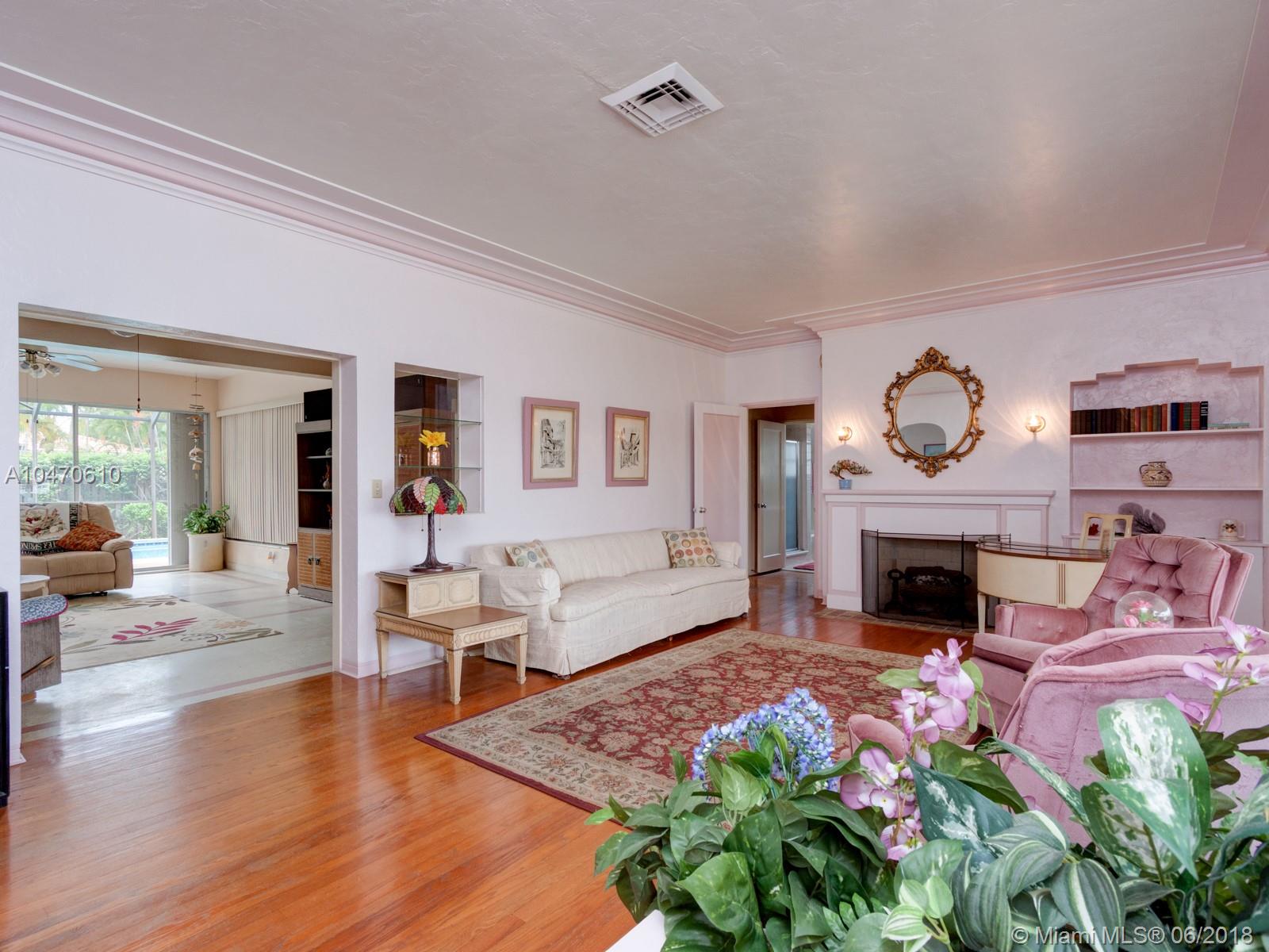 Rare opportunity to purchase a Southlake well-maintained home on a 100'x128' lot with a deeded dock. Unobstructed lake views from front of the home and front porch. Crown molding, living room and dining room. Original wood floors throughout bedrooms, living room & dining room. Unique patterned terrazzo floor in large Florida room. Five bedrooms, with one as a mother-in-law's quarters. Stream line light wood kitchen with Corian counter tops, new appliances & pantry. Built-in vacuum system in utility room off of the kitchen. Private fenced-in back yard patio, gas-heated pool & cabana bathroom with gas hook-up to hot water heater and gas dryer in laundry room. One-car garage with two-car parking from the service alley. Four-car parking on dock-side of the property.