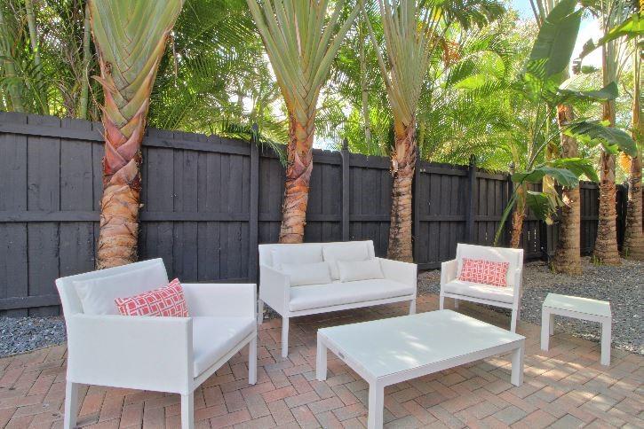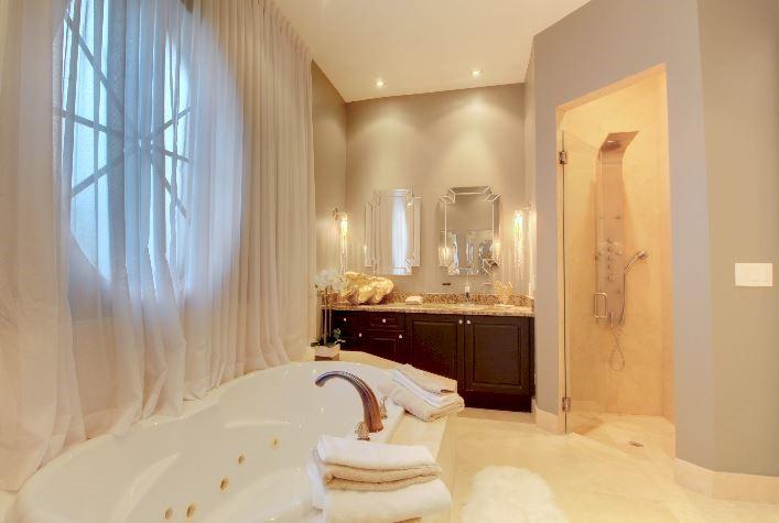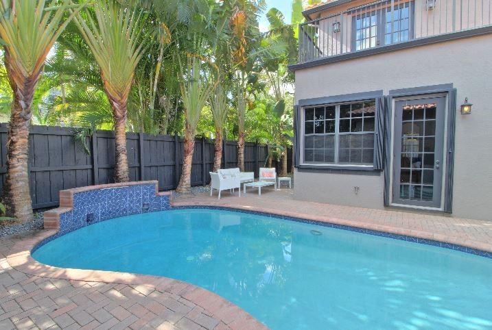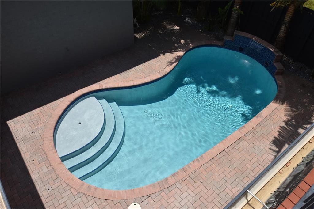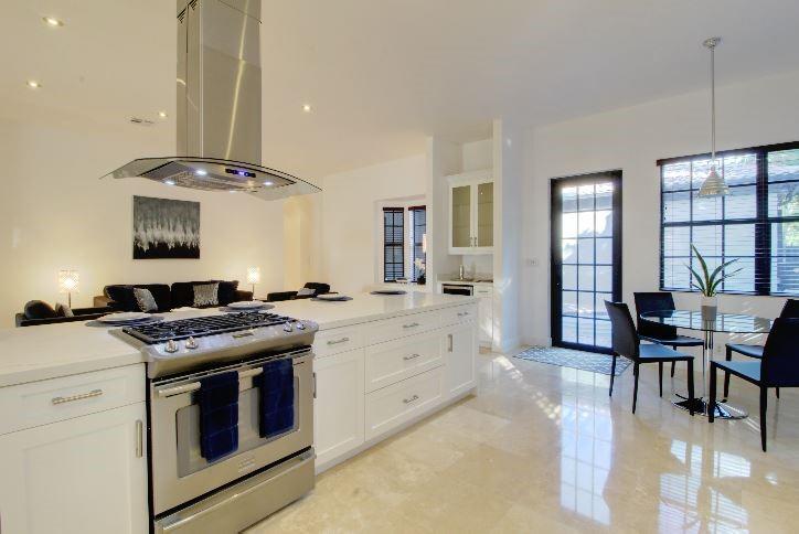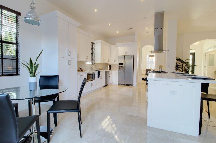 Beautifully appointed 5 bedroom 4 bath modern home ready for your personal touches. Corner lot with garage in rear and plenty of guest parking. New large open kitchen with natural gas cooking, stainless steel appliances. Large master suite and 2 additional bedrooms first floor. 2 en-suite guest rooms on second level. Saturnia marble floors, beautiful wood staircase. Central vac, Murano glass chandeliers, new washer & dryer, wine cooler,pantry. All Custom Closets, LED lighting,free form large private pool.