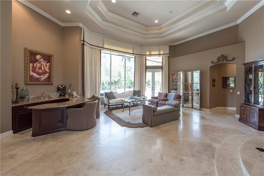 INCREDIBLE OPPORTUNITY!! This exquisitely appointed .92 acre estate has been completely remodeled with the finest quality & craftsmanship. Exceptional features incl: stunning kitchen w/custom wood cabinets, granite counters, center island, & walk-in pantry; marble floors in main living area; beautiful master bath; wet bar in living room; volume ceilings w/crown molding; single pane Fr. doors; large screened loggia, htd pool & spa w/waterfall; marble patio; & spacious, fenced backyard! Impact & accordion!