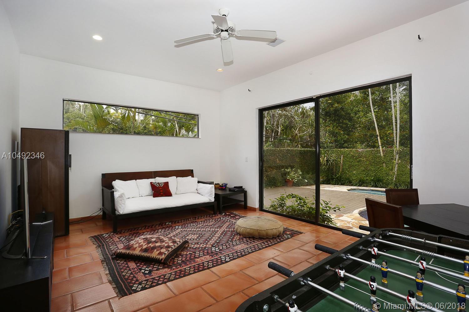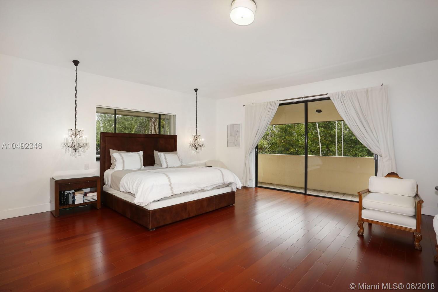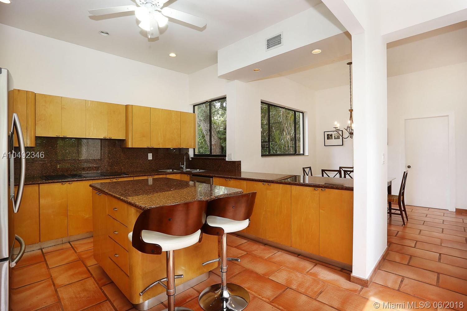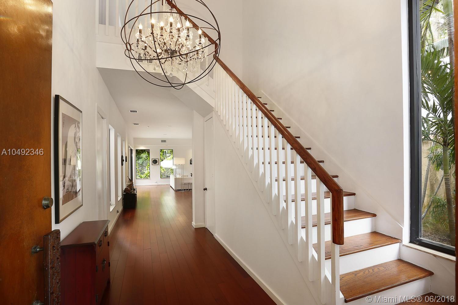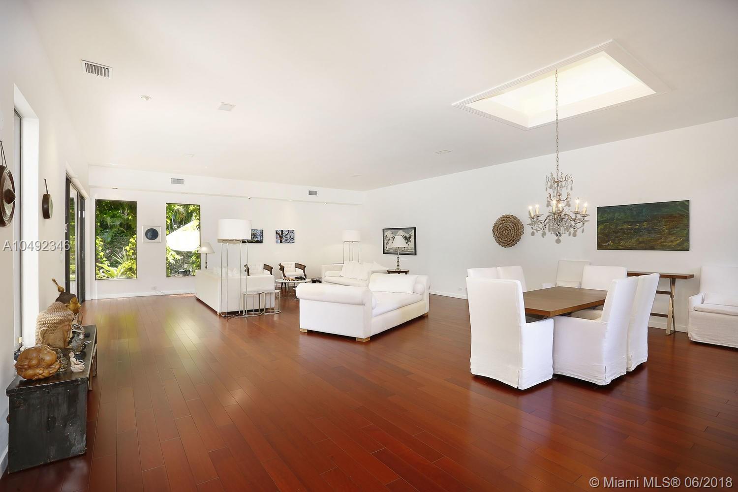 Lovely gated home, set back behind a coral rock wall & privacy hedge in lush South Coconut Grove. Light-filled rooms with high ceilings & stunning new hardwood flooring. Formal living, dining and family room, overlook tropical garden. Open kitchen features wood cabinetry, granite countertops, stainless appliances & adjacent breakfast area. Downstairs guest/housekeepers room. Second floor consists of 3 bedrooms with new en-suite baths and a large master suite with separate sitting area, balcony & new spa-like master bath. Expansive, walled backyard with tropical pool and terrace. New roof. Walk to highly rated private schools and to the Grove village center’s galleries, boutiques, cafes, bayfront parks & marinas. Minutes to downtown, MIA, Coral Gables, Key Biscayne and the Beaches.
