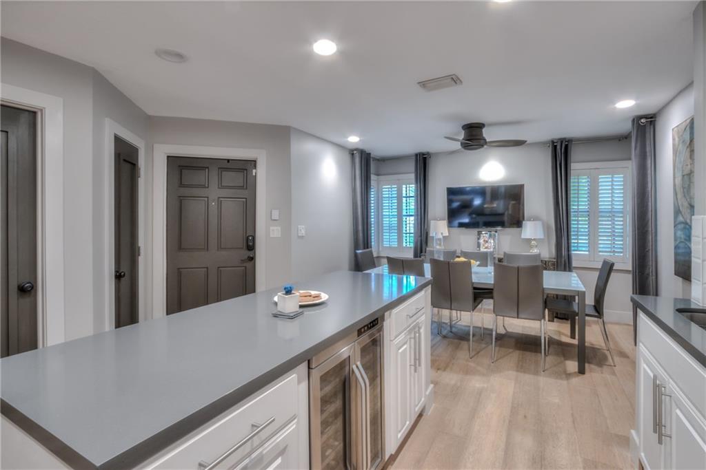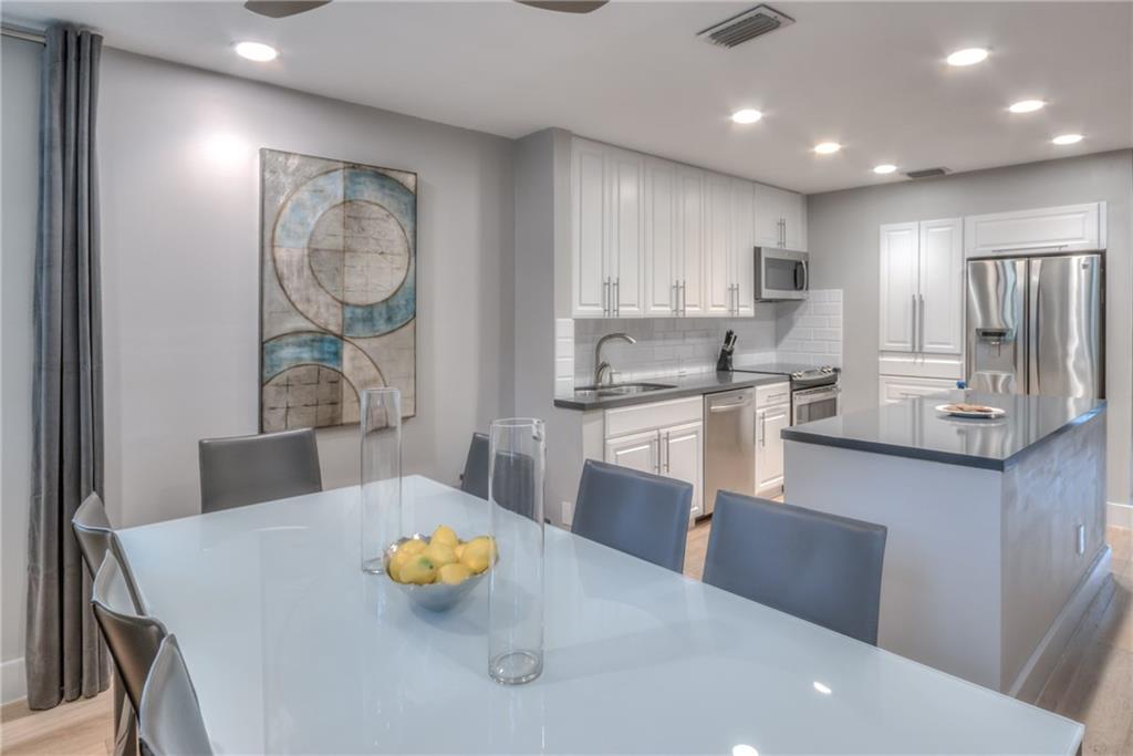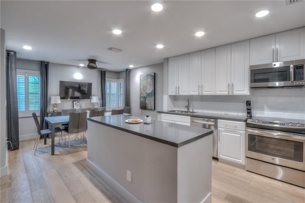 STUNNING corner residence completely updated. 2/2.5 plus office & laundry room. Beautiful high-end solid wood flooring & modern design throughout. Entertain in your brand new open kitchen w/quartz countertops & modern white cabinetry centered between large dining & living area. Living room opens up to private spacious patio w/jacuzzi. 2nd story is split floorplan w/laundry room. Master has walk-in closet while guest bedroom has separate office attached. Residence offers clubroom, pool, & 2 parking spots.
