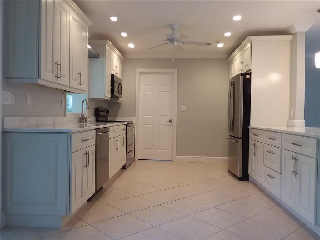 Home sits on a large .4 acre fenced lot and has a 8'x25' boat/RV parking pad. The back yard has a custom pizza brick oven and room for a pool or outbuilding. Inside has been freshly painted and has tile thru main living areas and wood/laminate floors in bedrooms and den. All impact windows and doors. Kitchen has SS appliances, new Jarlin cabinetry and quartz counters and recessed, pendant and under cabinet lighting. Laundry/mud room has new washer/dryer, extra cabinetry and new elec svc panel.
