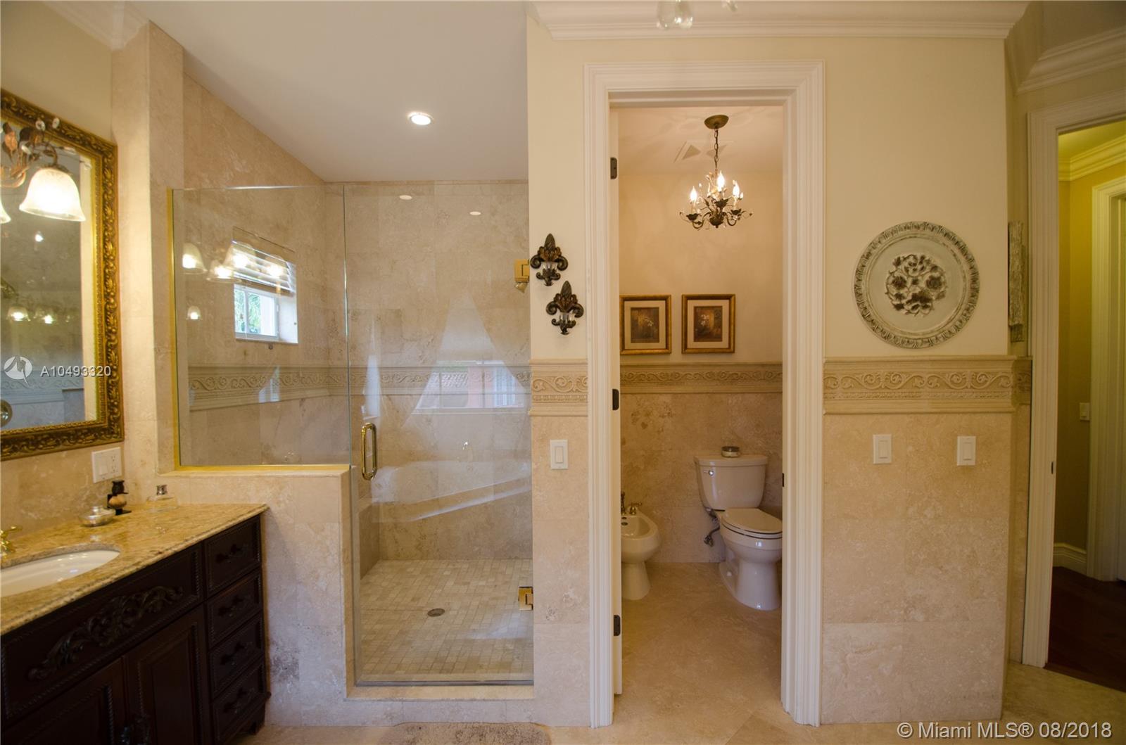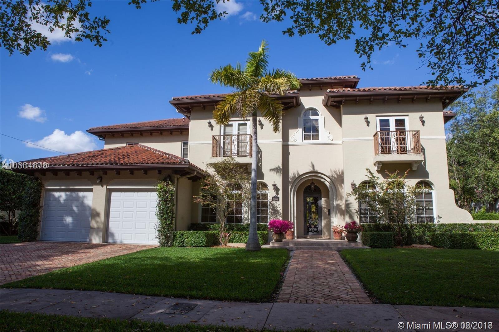 This is a Beautiful Mediterranean masterpiece located in the heart of North Coral Gables, minutes away from Miracle Mile, The Biltmore Hotel, Granada golf course and Coral Gables CC. This home is equipped with lush landscape, interior custom light fixtures, surround sound exterior entertainment, 18ft foyer ceiling, exquisite marble floors, large pool, & walk in closets. This house is built for entertaining and up scale family style living. Master bedroom is equipped with a private outdoor sun-deck/terrace, whirlpool spa, & built-in vault. THIS IS A MUST SEE!