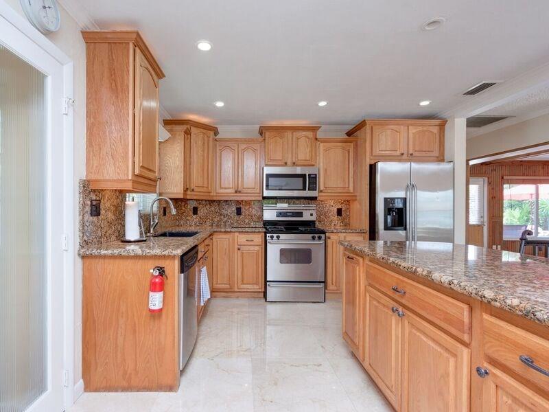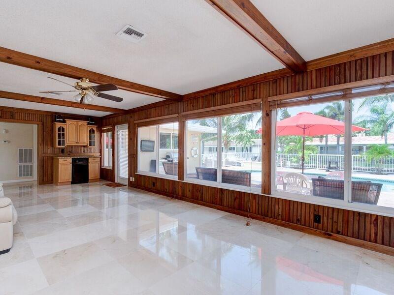 Motivated Seller! Ocean Access Pool Home w/ Private Dock. Marble flooring throughout and wood in bedrooms. HOME WARRANTY FOR ALL Major Appliances & Pool incl. til 4/2019. Updated electric! Open concept kitchen w/ large cooking Island. 2 wine fridges. Tons of cabinets w/ lights& pullouts. Fenced yard, pool w/ baby gate & rock water fall Cabana Bath w/ dual sinks. Gas oven. Big laundry rm w/ storage + Shed/Work room. Eastern exposure. Walk to Mcnab elementary. 1 Blk to shops & US1. MB has central air AND New wall a/c saves energy. 1 fixed Bridged Newly pavered driveway. All pavers recently sealed.