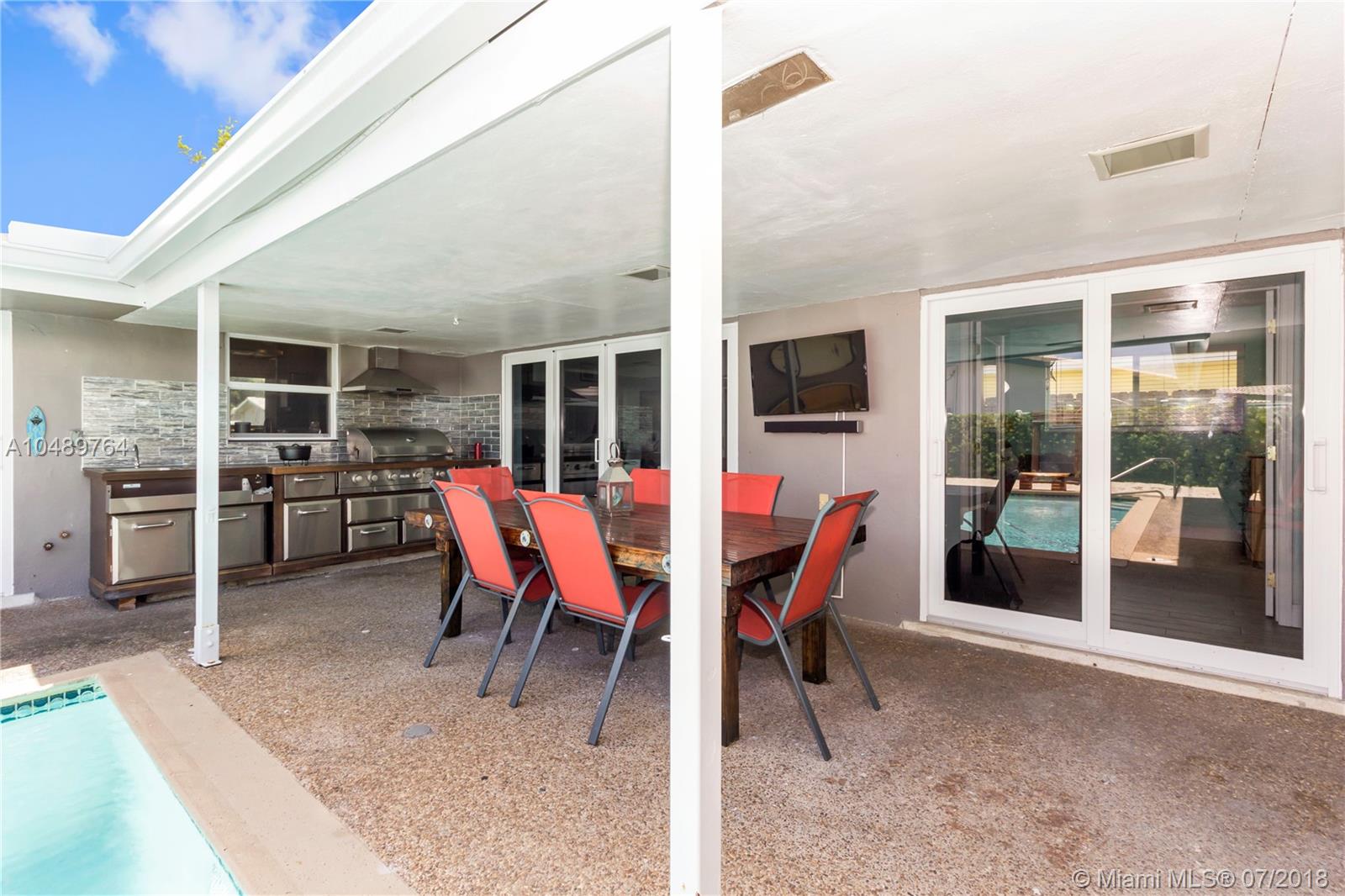 The best Fort Lauderdale waterfront opportunity on the market! Spectacular Coral Ridge Isles 4/2, Bright, Clean & Completely Remodeled Home, including New Hurricane Impact Windows / Doors & Garage. Porcelain Plank Wood-Look Flooring throughout, Gorgeous Kitchen w/ New Cabinets, Butcher Block Counters & Farmhouse Sink, all new LG appliances, including Washer / Dryer, Newer AC system & Water Heater, Spectacular Top of the Line Outdoor Kitchen / BBQ, outdoor Security Camera, upgraded Electric Panels, new LED Lighting. Courtyard Style Home - Perfect to Watch the Kids from almost every room, or Entertaining. 75 Feet on Deep Water, Ocean Access, Boat to the Restaurants. Fantastic Floranada School District, but also close to Pine Crest School & the Beach.