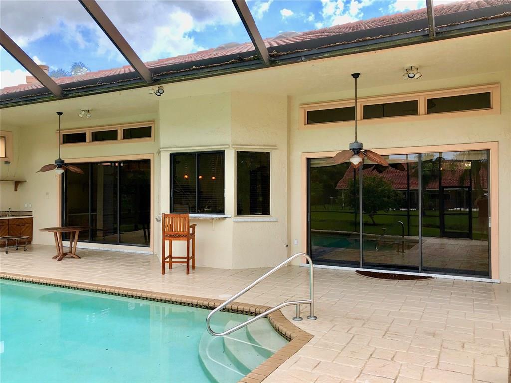 Rarely available 5/3, 3car garage home situated on an oversized water lot in the sought after neighborhood of Pine Grove.House features a beautiful upgraded open kitchen with granite and SS appliances,wine cooler, pass through.Split floor plan.High ceilings with lots of natural light.Huge master bedroom overlooking the pool and lake.Master bathroom is a must see.The screened covered patio w/summer kitchen,pool & spa overlooking the lake makes it perfect for entertaining.Hurricane shutters.AC 2011.Low HOA.