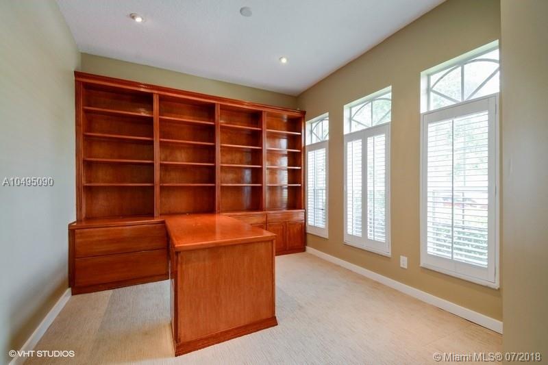 One of the prettiest of homes in superbly located gate-guarded community, close to Universities, NSU and new hospital coming soon. 3 Bdrms 3 Baths plus Office w/Built-in. Master bath offers His/hers vanities, double shower, His/hers walk-in closets. Wood-look tiles in living areas, modular closet systems, kitchen with bar & beverage fridge. Blackout blinds, Elegant fixtures, Front-load Washer/dryer, 5 yr. new A/C, Accordion Shutters, fenced yard, 2 car garage & golf cart garage. Most convenient location to shopping, dining and everything that sensational Davie has to offer, plus top rated schools. This home shows beautifully!
