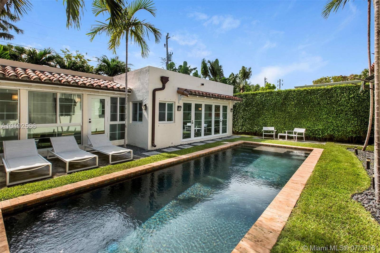 Walk into the foyer and immediately feel relaxed and at ease. Built in 1939 this Miami Beach home has an open and light filled floor plan, beautiful original details, full updates and a lushly landscaped garden. Exposed beamed ceilings, wood floors, Chicago brick and secluded limestone terrace all add to the charm and comfort. West facing chef’s kitchen is complete with 2 sinks, 2 dw’s and viking stove. Main house has 3 BD and 2 BA. Pool cabana house opens to a heated pool and has a media room, mini kitchen and 2 BD & 1 BA. Cabana house is perfect for poolside gatherings and allows privacy for guests. Located in desirable Mid-Beach. Walking distance to shops, restaurants, schools and Pinetree Park. Conveniently located 1 mile to the Miami Causeway and ½ mile to the Beach.
