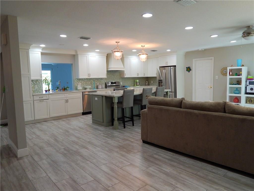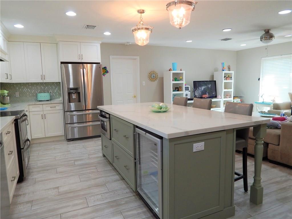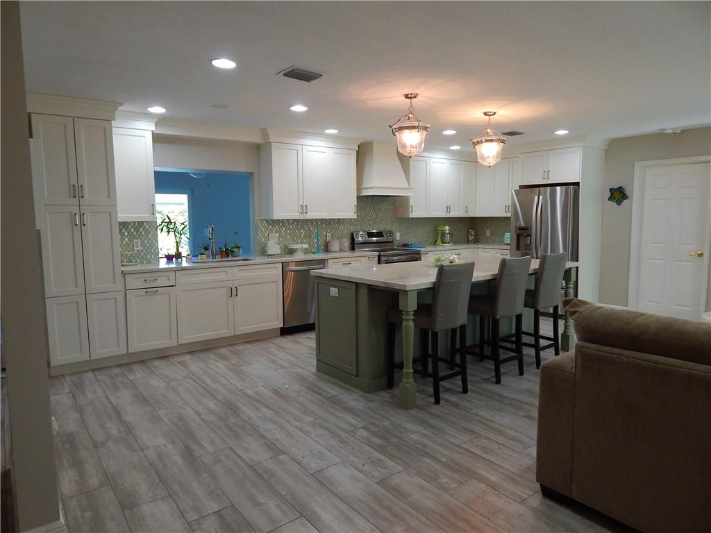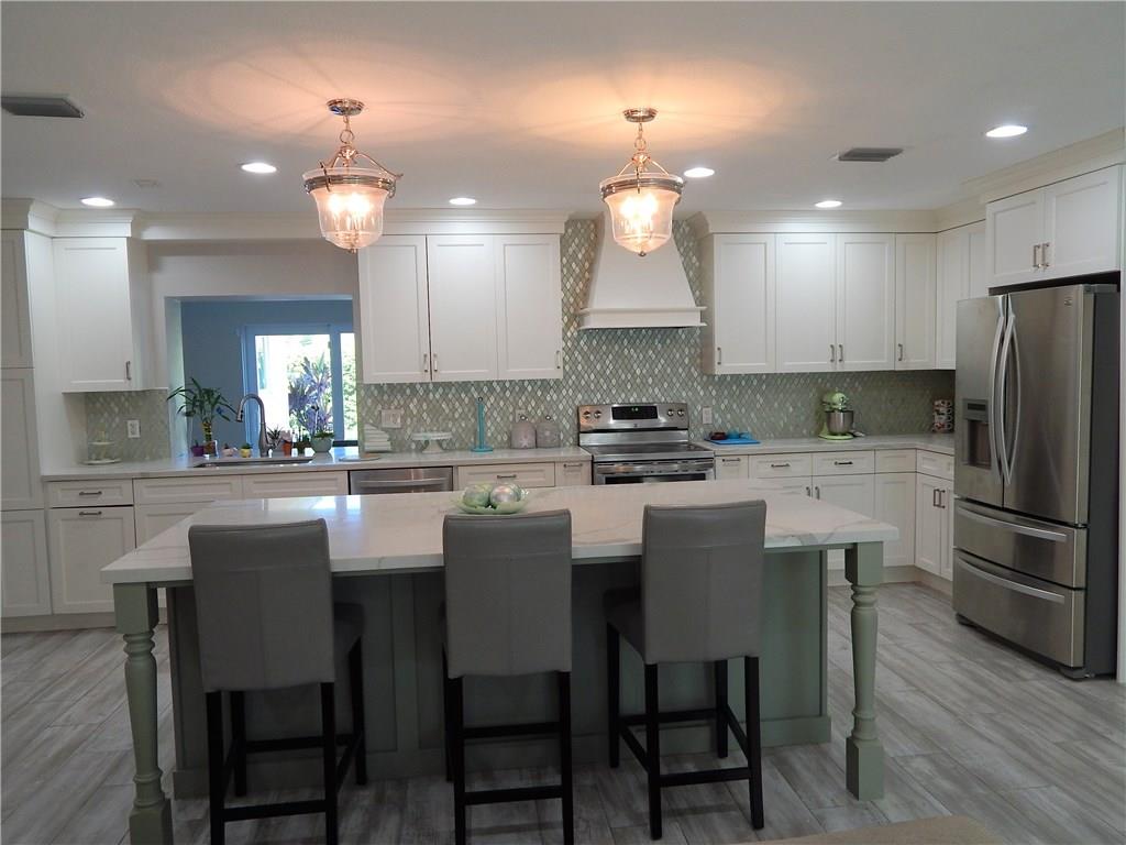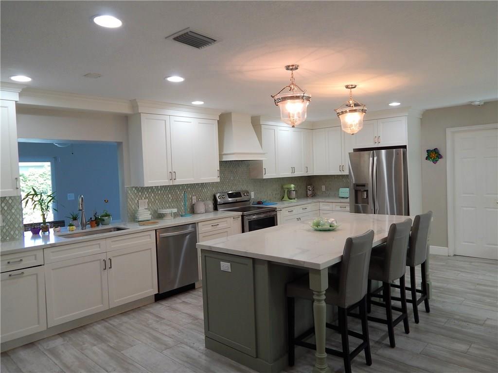 What a renovation! Come and take a look at this 4 brd, 2 bath, pool home, complete w/impact windows & doors. Over 90k in upgrades gives you a beautiful open concept kitchen and living room. This is a chef's dream with endless quartz counter space, all new appliances, wine fridge, plentiful storage and solid wood cabinets. All new flooring throughout and remodeled 2nd bath. Roof replaced in '03. Perfect location with easy access to highways, & it's steps away from multiple dining & shopping options!