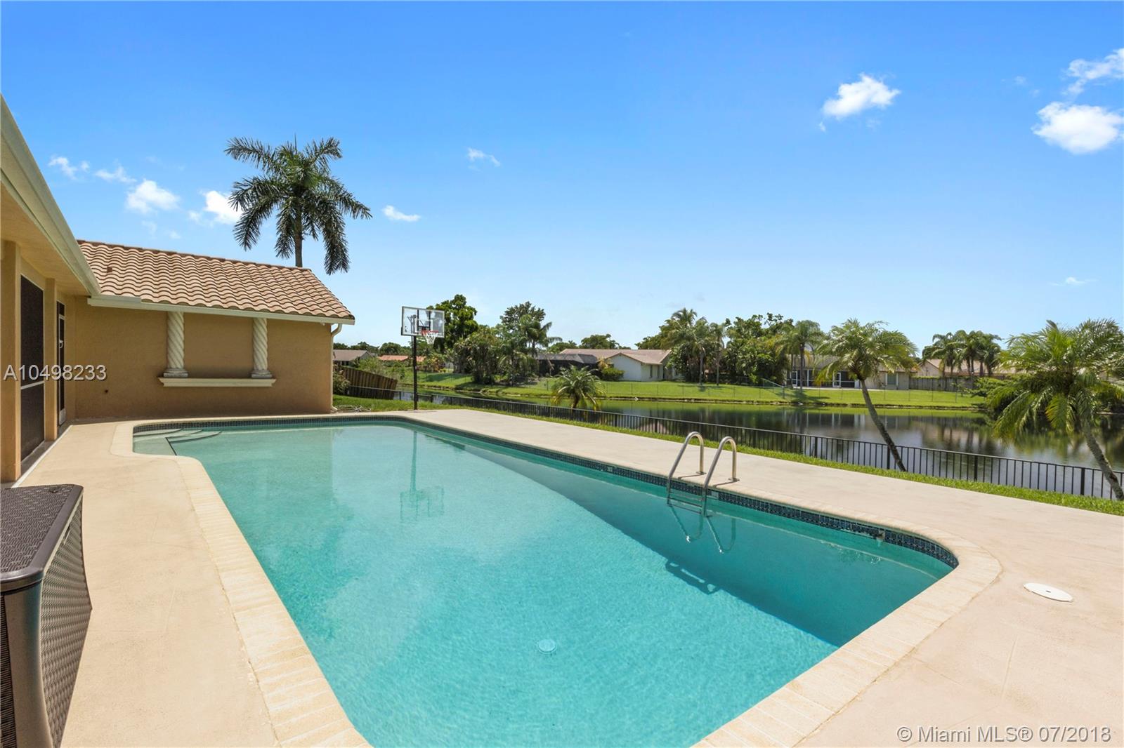 Beautiful Pool Home in Desirable Jacaranda Lakes! Best lake view in the community. Come and show this immaculate 4-bedroom home with numerous upgrades. Impact-resistant doors and windows throughout the house. Newer A/C unit, newer water heater. French doors in master bedroom and living room. The spacious covered patio is an entertainer's delight featuring a built-in BBQ and bar area with top-of-the-line gas BBQ grill, extractor, ice maker and wine cooler. Newer tile floors and updated kitchen with wood cabinets, granite counter tops. Master bedroom with updated bathroom and walk-in closet. Enjoy the serene pool and lake view from the fenced backyard or huge enclosed patio. Exterior shed has plenty of space for tools. Epoxy garage floor and more! Roof-2010; Impact Windows&Doors-2014