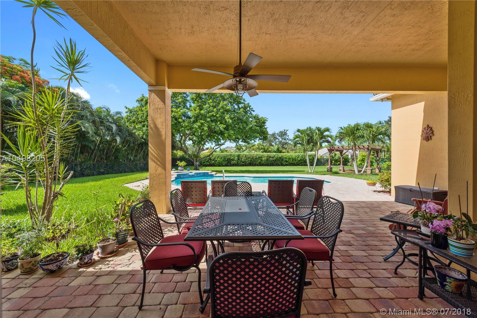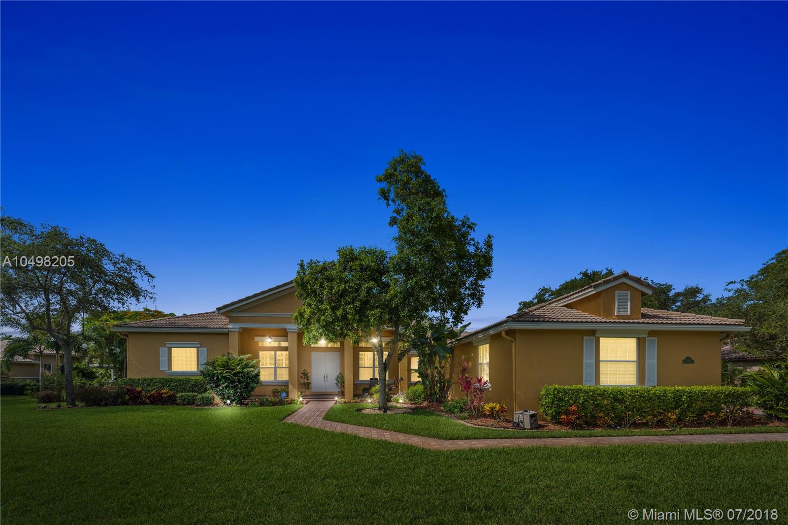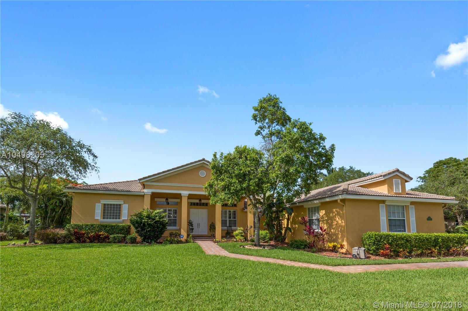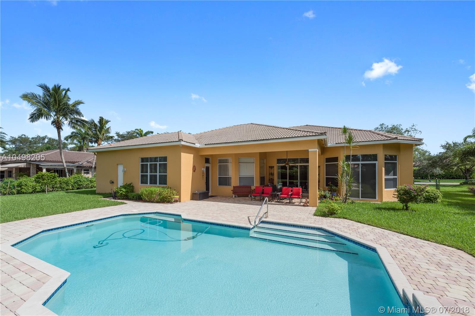 Spectacular Saddlebrook Pool Estate awaits! This meticulously maintained gem is located in one of West Davie's most desirable gated neighborhoods! Spacious Living Areas, Open Concept provides High Ceilings, Side Loading 3 car garage, Huge Fenced Lot, Large Covered Patio and Deck area. Excellent house for growing family or for Entertaining! Triple split plan, crown molding, gourmet kitchen featuring Stainless Steel appliances, Granite and custom cabinetry, lots of storage and Butler's Pantry. Multi Zoned A/C, Master Bedroom Suite includes sitting area, Beautifully remodeled Master Bathroom suite feels like a Spa! Neutral colors, quality appointments and great curb appeal. A fantastic community in one of Broward County's top School Districts, Centrally located near Fine Dining, Shopping!!