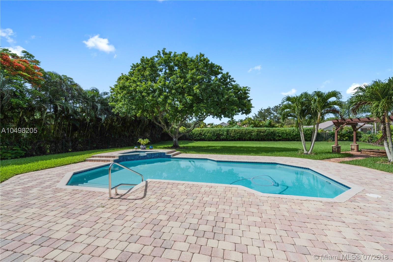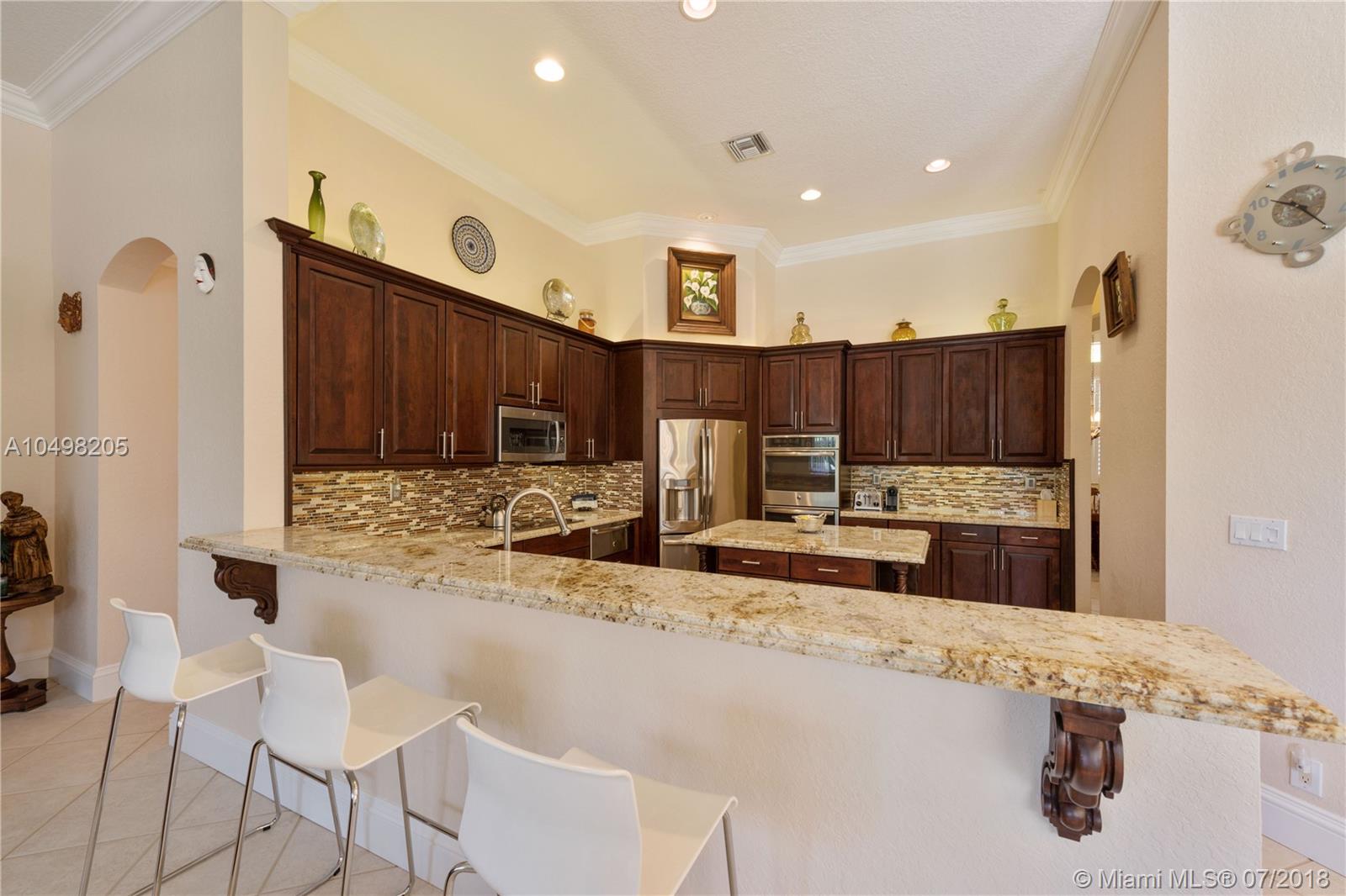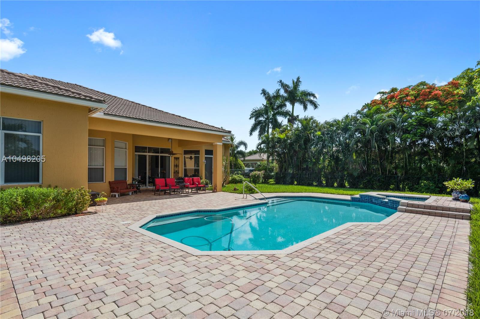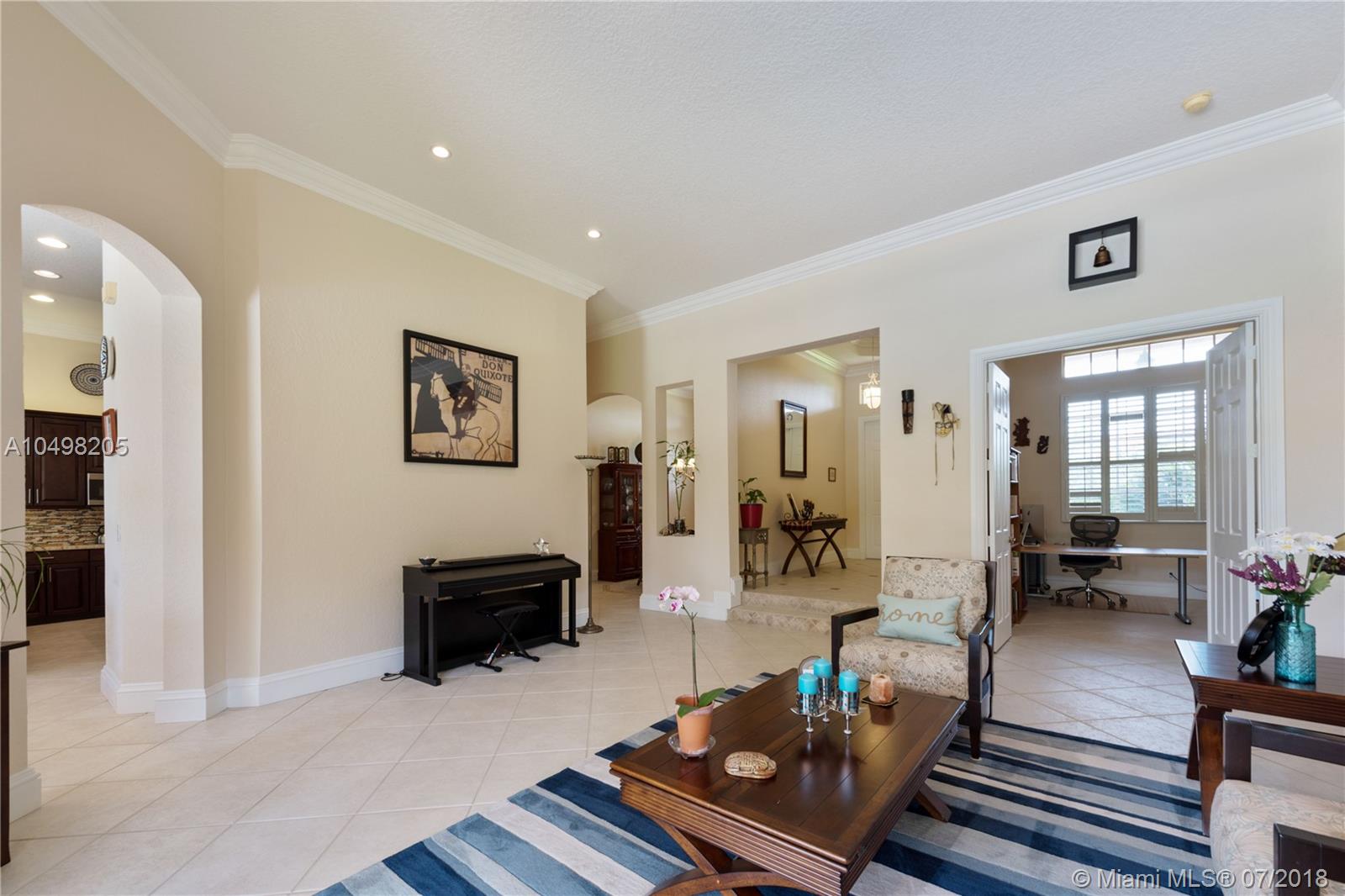 Spectacular Saddlebrook Pool Estate awaits! This meticulously maintained gem is located in one of West Davie's most desirable gated neighborhoods! Spacious Living Areas, Open Concept provides High Ceilings, Side Loading 3 car garage, Huge Fenced Lot, Large Covered Patio and Deck area. Excellent house for growing family or for Entertaining! Triple split plan, crown molding, gourmet kitchen featuring Stainless Steel appliances, Granite and custom cabinetry, lots of storage and Butler's Pantry. Multi Zoned A/C, Master Bedroom Suite includes sitting area, Beautifully remodeled Master Bathroom suite feels like a Spa! Neutral colors, quality appointments and great curb appeal. A fantastic community in one of Broward County's top School Districts, Centrally located near Fine Dining, Shopping!!