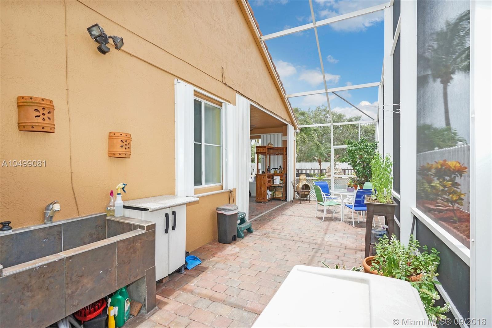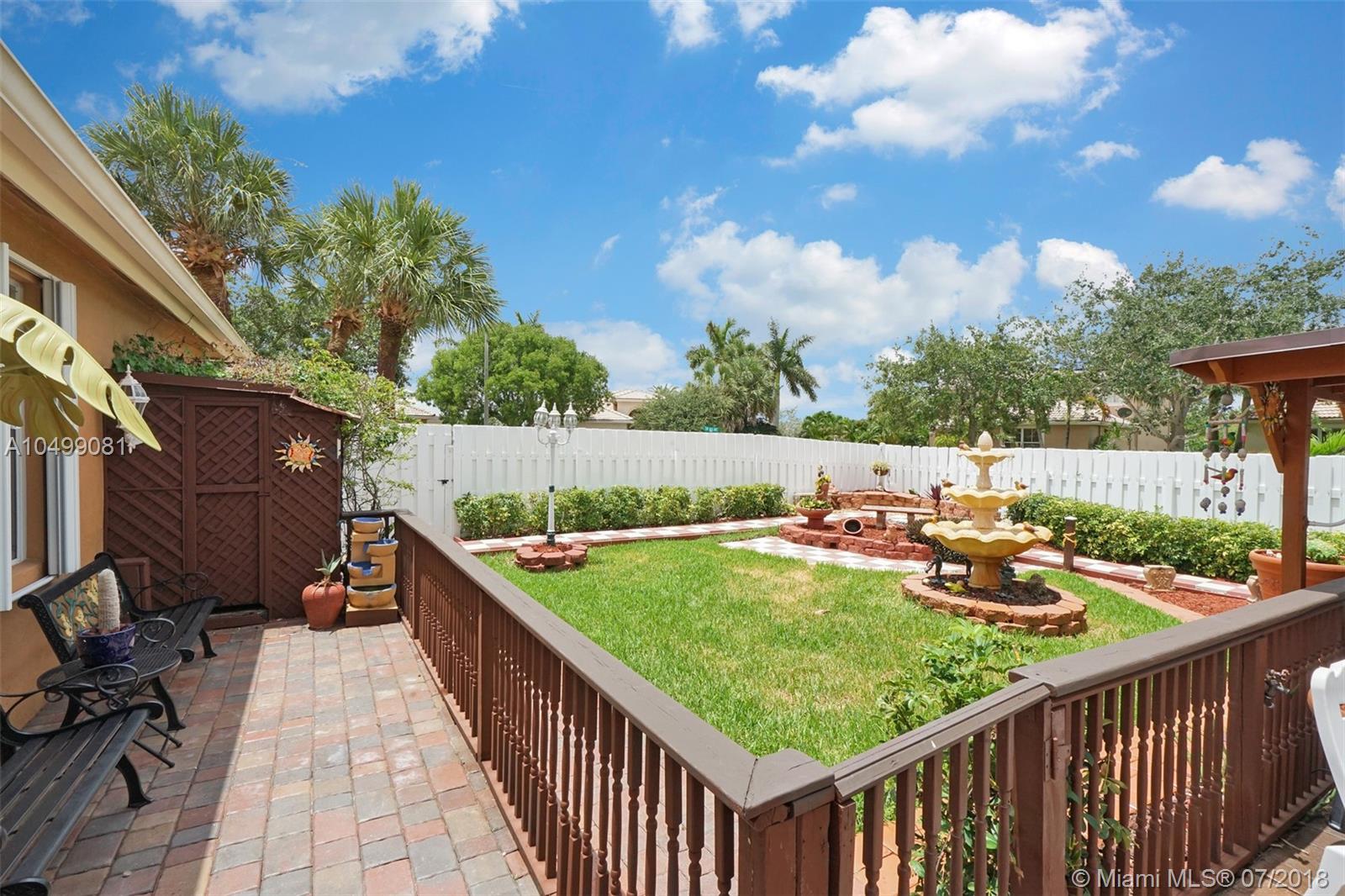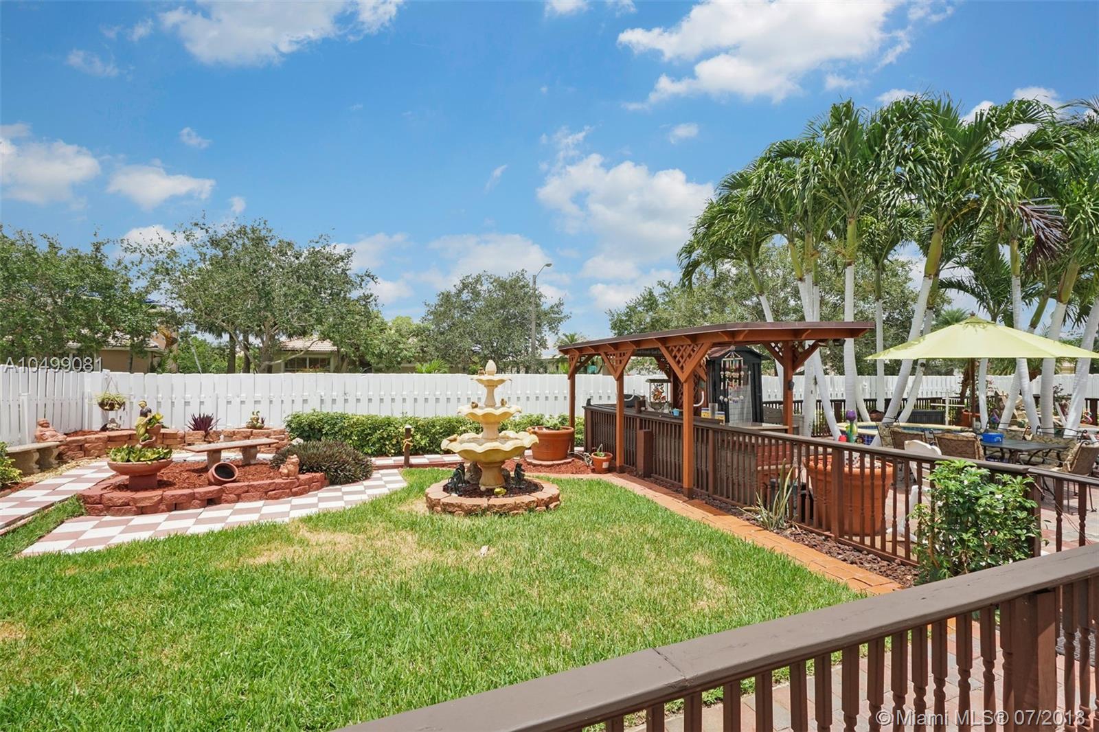 Gorgeous 4 bedrooms 2 bath house in gated community, oversized corner lot, title throughout, vaulted ceilings, crown molding, wooden cabinets with granite counter tops, huge master bedroom with double doors, big walking closet, security cameras, accordion shutters, spectacular patio area heated salt water pool with waterfall, Jacuzzi, exterior kitchen, BBQ, sauna, palm trees, ideal to entertain family and friends. Every little detail you can think of this house has it. Please call today to schedule an appointment.
