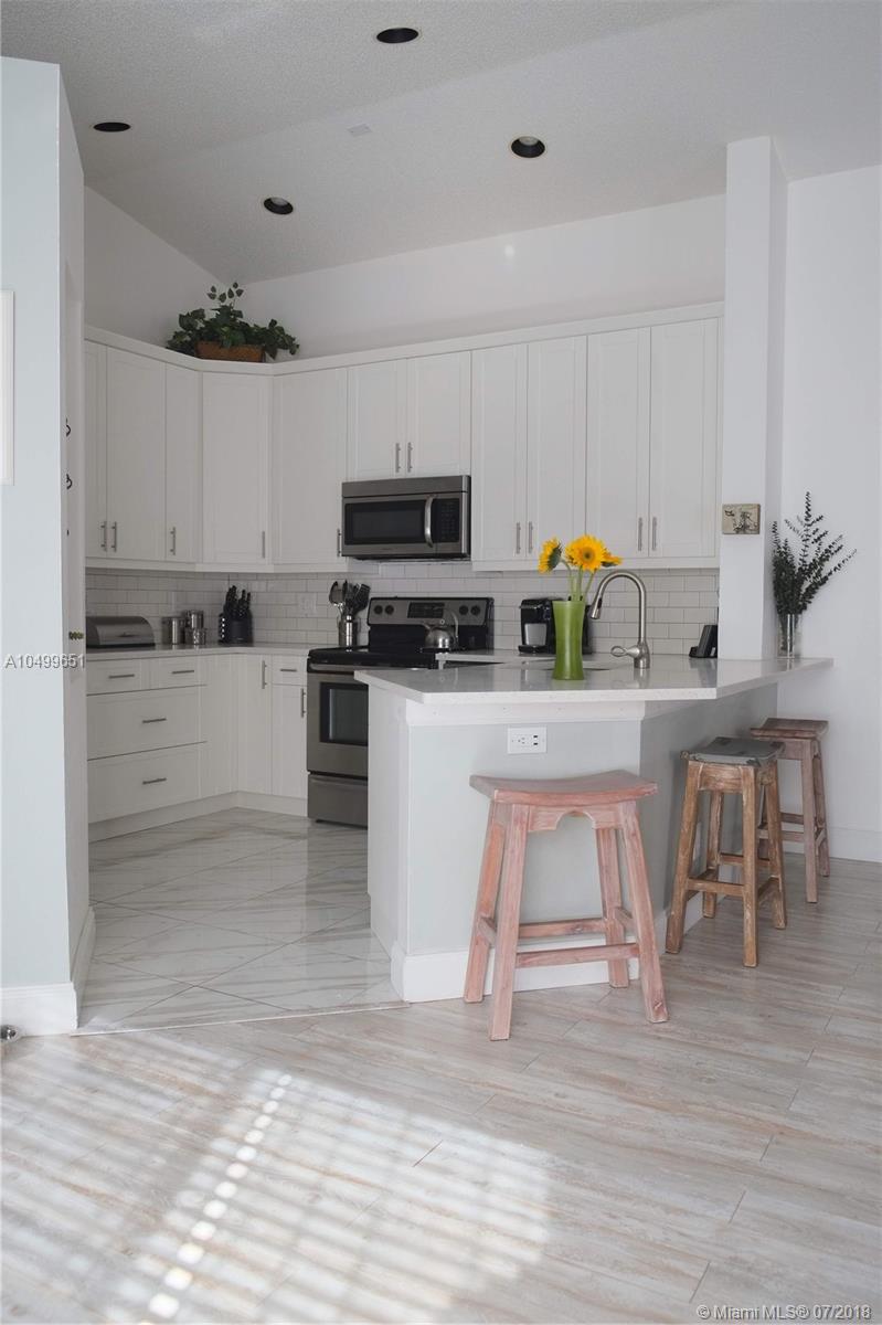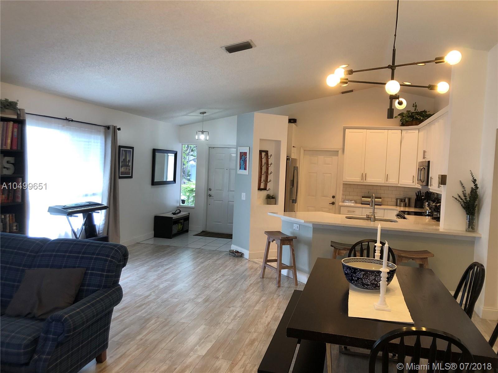 Move to Weston & Enjoy: Three Bedroom, Two Bath, Two Car Garage, Single Family Home in The Ridges. Updated Kitchen with new cabinets, quartz counter tops and SS appliances. New wood-grain flooring too. A/C replaced 2017 plus Eco-Smart tank-less water heater for maximum efficiency. One story convenient living with vaulted ceilings for bright and cheerful home. Fenced yard with updated patio for a cool retreat. Community is guard gated and features trails and large community parks with 3 pools, soccer fields, basketball, and other amenities. Excellent local schools are a big plus.