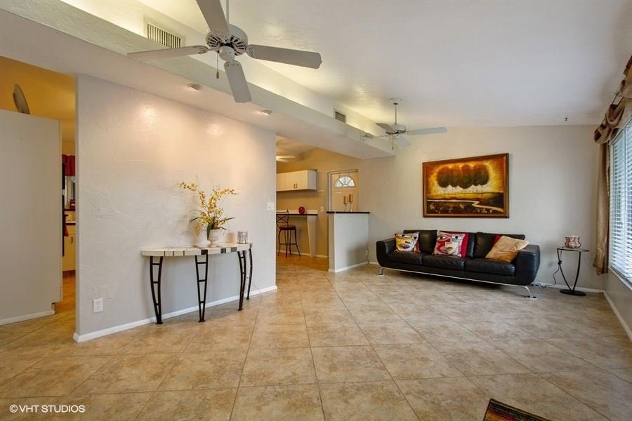 IMMACULATELY CLEAN home. Just bring your toothbrush! Friendly neighborhood, 1 mile to the beach. Open, split floor plan with marble-look tile, impact windows & shutters. Large master suite with patio access, natural light & walk-in closet. Luxurious master bath with over-sized jacuzzi tub/shower, double sinks & vanity. Roomy kitchen with island, snack counter & lots of cabinets! Gorgeous backyard with 6' privacy fence & screened & unscreened patios. Room for a pool. Carport with laundry/shop/storage area.