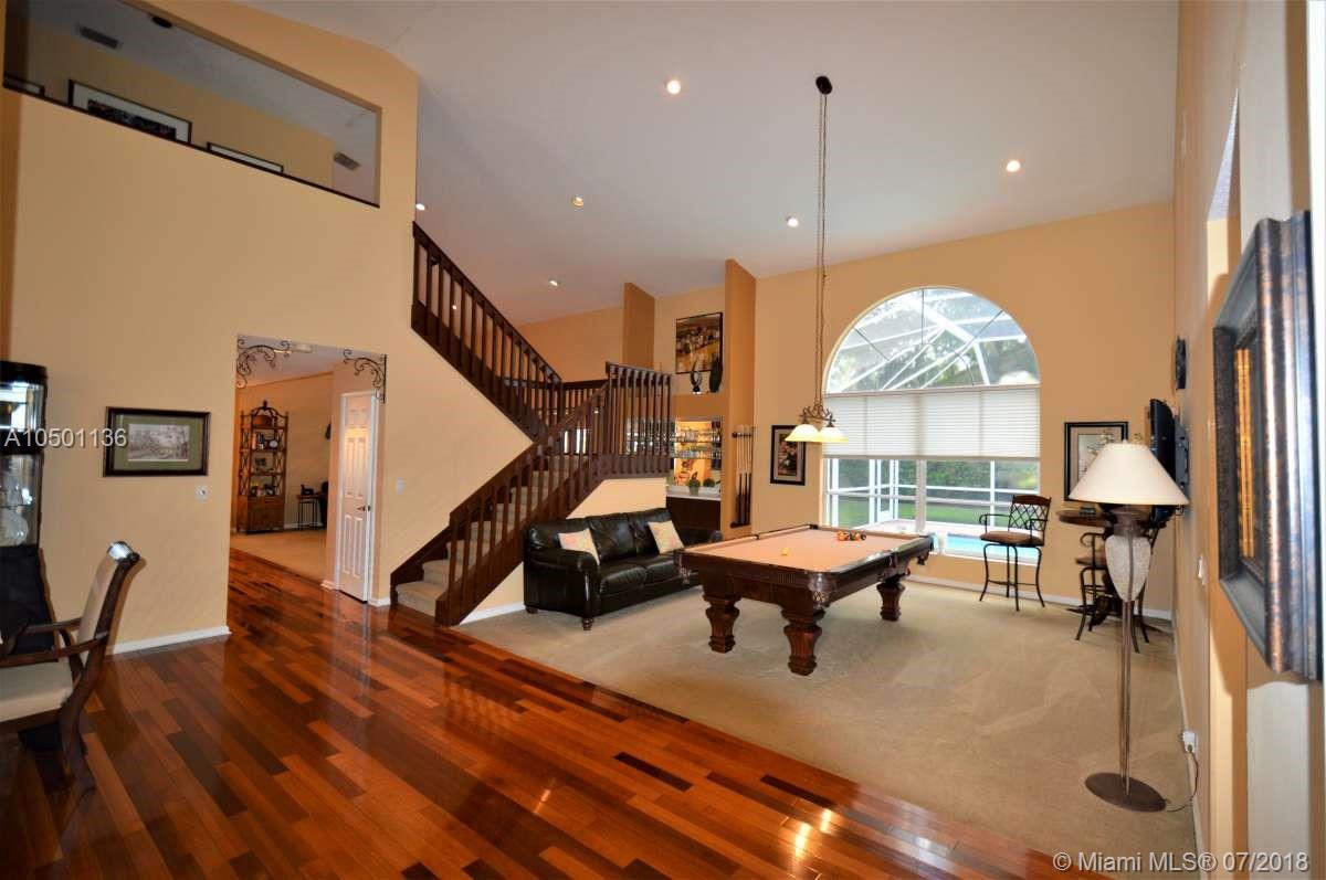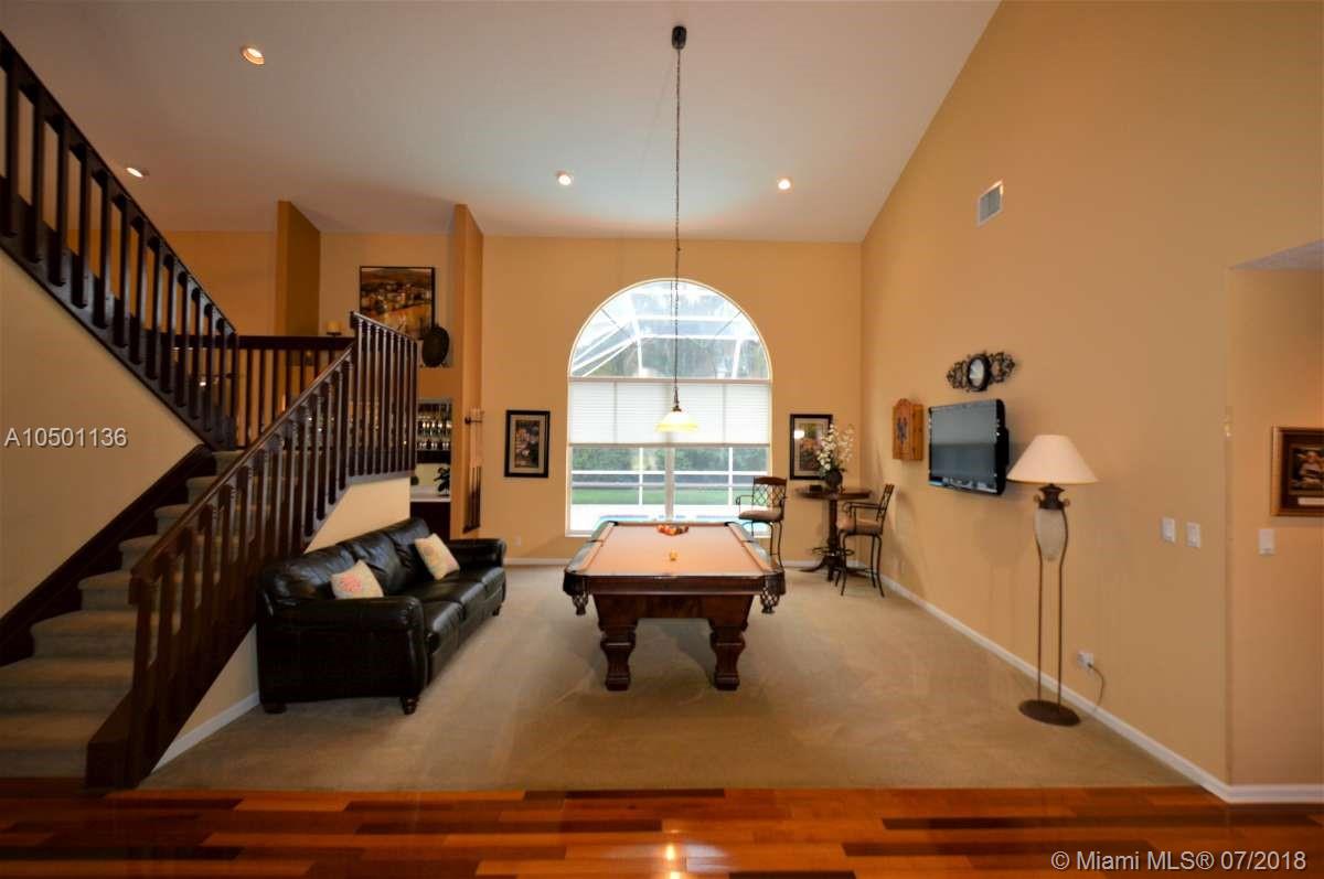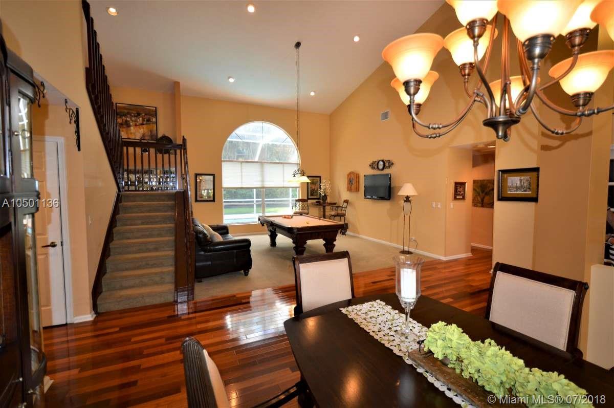 JUST REDUCED! Magnificently maintained 5 bedroom 3 bath home in the Estates section of the highly desirable community of Embassy Lakes with screened pool & patio, set on an over sized lot. With 3500+ sq.ft. of air conditioned space there is plenty of room for a large family and great for entertaining. Home has hardwood floors downstairs. Features include a 3 car garage, 2nd floor loft, covered patio, hurricane shutters, soaring volume ceilings, hi-hat lighting, and wet bar. Enjoy great neighbors on tree-lined streets. Clubhouse, gym, tennis courts and community room add to peaceful living in a gated community environment. A rated schools.