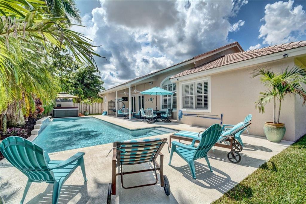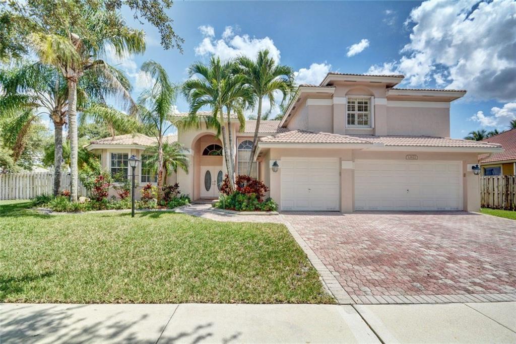 Wow! 5 bed, 4 bath pool home, 3 car garage on over a 1/4 acre corner lot in prestigious Pembroke Falls. Truly spacious home features 40’ x 12’ lap pool, recently remodeled w/fiber optic lighting, waterfall and lavish landscaping. Spa included. Home freshly painted. Huge master and guest suite on first level. Newer hurricane impact French doors, wood blinds on windows, double oven, wine cooler, 2 a/c units, beautiful laminate on first level with new wood look tile in guest suite. Low HOA includes cable, internet and alarm. Great location near I-75 and Sheridan. Outdoor amenities include heated pool w/jacuzzi & tot wading pool, lighted tennis courts, basketball courts. Clubhouse with fitness center, meeting rooms, grand ballroom & family activities.