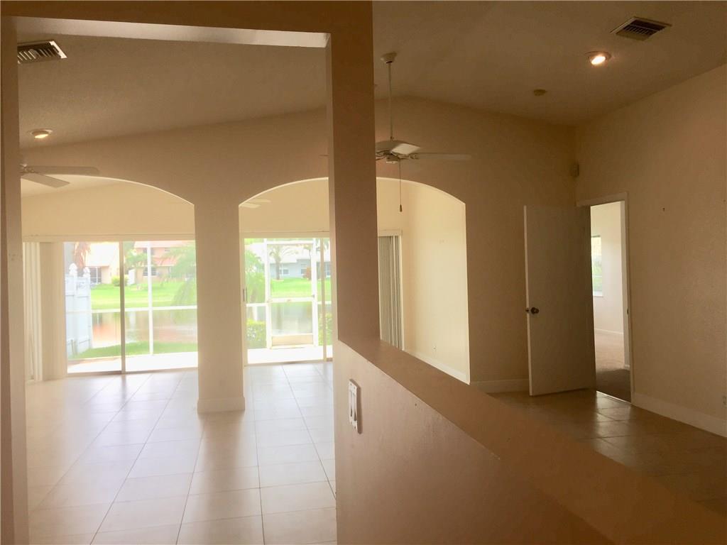 LOVELY 3/2 2 CAR GARAGE IN DESIRABLE BOCA SPRINGS, SPLIT BEDROOMS WITH VALTED CEILINGS IN MASTER BEDROOM ALONG WITH HIS/HER CLOSETS, UPDATED BATHROOMS, OPEN, SPACIOUS LIVING AREA, SCREENED IN PATIO OVERLOOKING A PEACEFULL LAKE, NICE, NUETRAL TILE THROUGHOUT WITH NEW CARPET IN BEDROOMS, WINDOWS HAVE ACCORDIAN SHUTTERS AND GARAGE DOOR IS STEEL REINFORCED. BOCA SPRINGS IS A LOVELY COMMUNITY OFFERING, WONDERFUL AMMENITIES SUCH AS POOL, TENNIS, KID PLAY GROUND, AND BASKETBALL, SIDEWALKS THROUGHOUT!