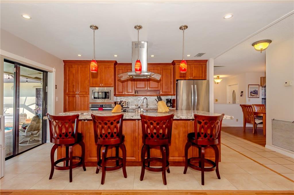 MOVE RIGHT IN this 4 bedroom 2 bath home offering a fabulous updated kitchen with SS appliances and granite overseeing the screened patio/ pool area and family room. Updated Master Bath. Roof replaced in 2008,newer hot water heater and AC. Laminate and tile flooring. Hurricane shutters. Stacked bedroom plan. Close to everything-parks, shopping, restaurants and grocery stores.