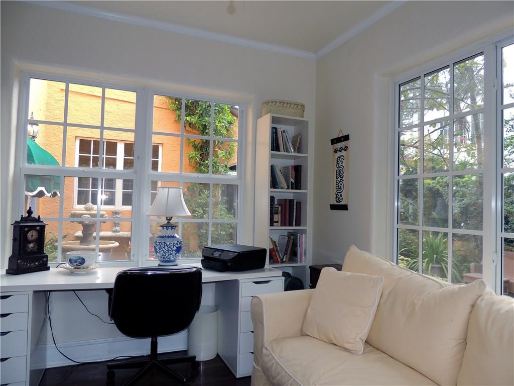 Historic two story Old Spanish villa on desirable Asturia Ave, one block from Granada Golf Course, 5 minute drive to downtown Coral Gables. Built in 1925 with 10' high 1st floor ceilings, crown moldings, hardwood floors, wood burning fireplace, large kitchen with breakfast bar, walled garden style patio with fountain and awning covered area, perfect elegant entertaining area. Separate 1/1 guest house & a large party room. Large master bedroom with terrace. Impact windows and sliding glass doors.