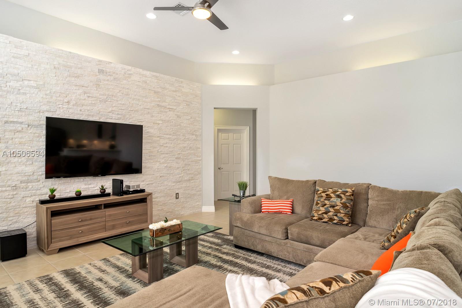 Come see this impeccable, upgraded and meticulously remodeled 5 bedroom/3 bathroom dream home in the lavish, upscale community of Sunset Lakes in Miramar! The massive vaulted ceilings, beautifully upgraded kitchen, luxurious master bathroom, built-in sound system, recessed lighting, high end fixtures, and stacked stone wall in the family room are just a few features that are sure to wow you. Enjoy entertaining your family and friends in the well landscaped front or backyard with an over sized pool or simply relax in your private oasis as you enjoy living lakeside or in your own outside spa. This tucked away and captivating community has a lakeside beach and beach pavilion, courts, parks and more. Buyer's Agent to verify all information