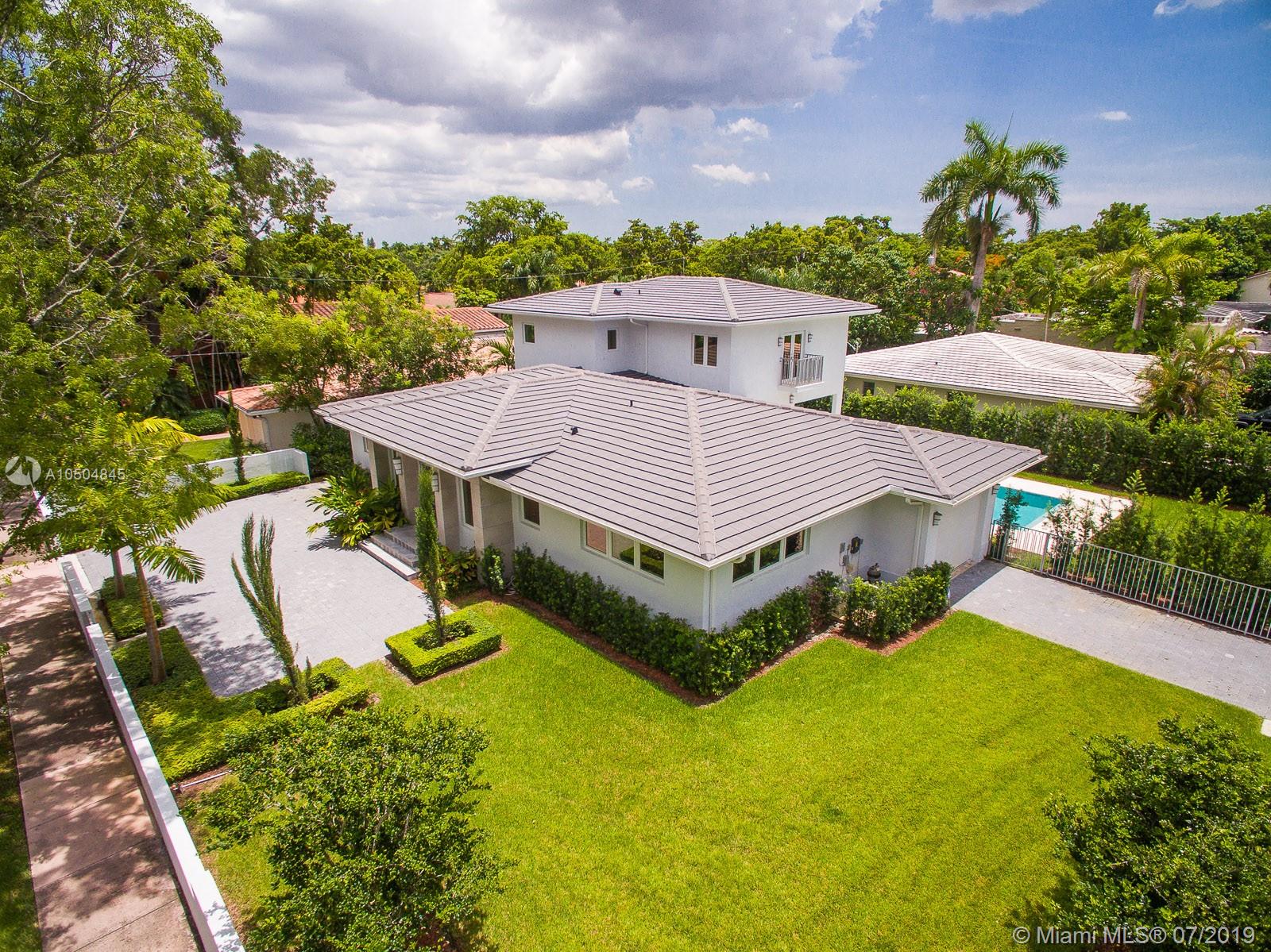 Brand new construction on a wonderful oversized corner lot in a quiet neighborhood close to everything; Granada Golf Course, Gables Country Club, the Biltmore hotel, Salvadore Park and all the shopping and restaurants on dynamic Miracle Mile. Clean, modern, impeccable. With an open kitchen, lovely family room, dining room and living room including 2 master bedrooms, one downstairs, one upstairs, this family home has a beautiful salt-water pool with generous covered entertainment spaces, and ample parking on two sides on a beautiful, quiet street.