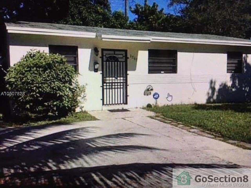 SPACIOUS 3 BDR/1 BTH HOME LOCATED IN HIGHT DESIRABLE CENTRAL AREA OF NORTH MIAMI BEACH. SEMI FORMAL DINING AREA. BEAUTIFUL PATIO WITH GARDEN VIEWS PERFECT FOR BBQS WITH AN OUTSIDE STORAGE. WASHER & DRYER HOOK UPS. ALMOST 1000 SQ FT OF LIVING SPACE. TILED FLOORS. GREAT LAYOUT.QUIET NEIGHBORHOOD. COCONUT PALM TREE ON THE LOT. A MINUTE AWAY FROM A KIDS PLAYGROUD AND A COMMUNITY POOL. CLOSE TO SHOPPINS CENTERS, BEACHES, HIGHWAYS, AIRPORTS AND RESTAURANTS. THE HOUSE IS RENTED TO A SECTION 8 TENANT THRU MAY 31, 2019 AT $1,750/M. GREAT FOR INVESTORS. NO LIENS.