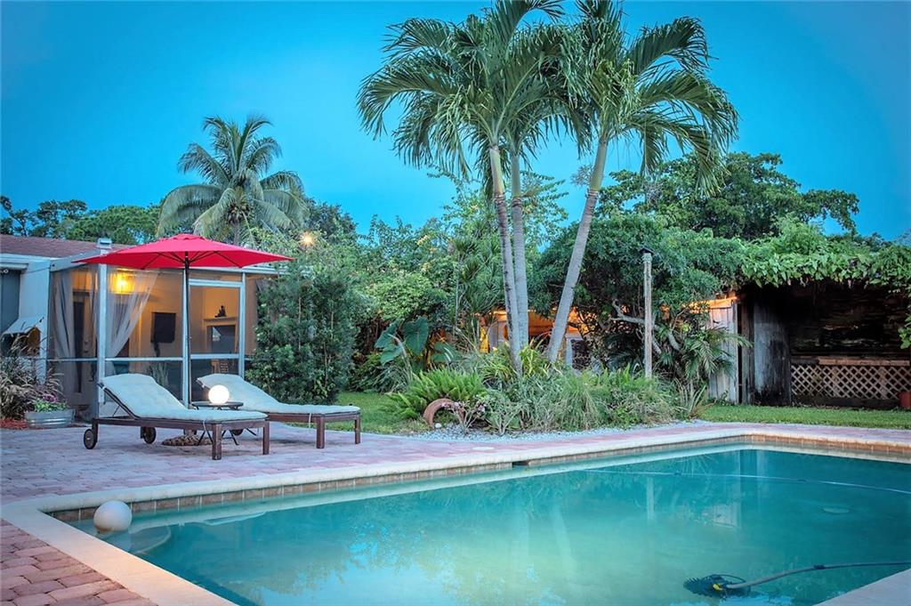 Welcome home to this wonderful, cozy & well maintained two bedroom, one bath pool home! Beautifully maintained & meticulously well kept. This home is bright & cheery w/ wood laminate flooring, updated bath, fireplace, family room/den & screened patio. Sensational fenced back yard oasis with beautiful pool, tropical landscaping, shed and private tranquil setting. Peace of mind w/ impact windows & newer roof. Carport and plenty of off street parking. Very well priced and ready to move right in. A must see.