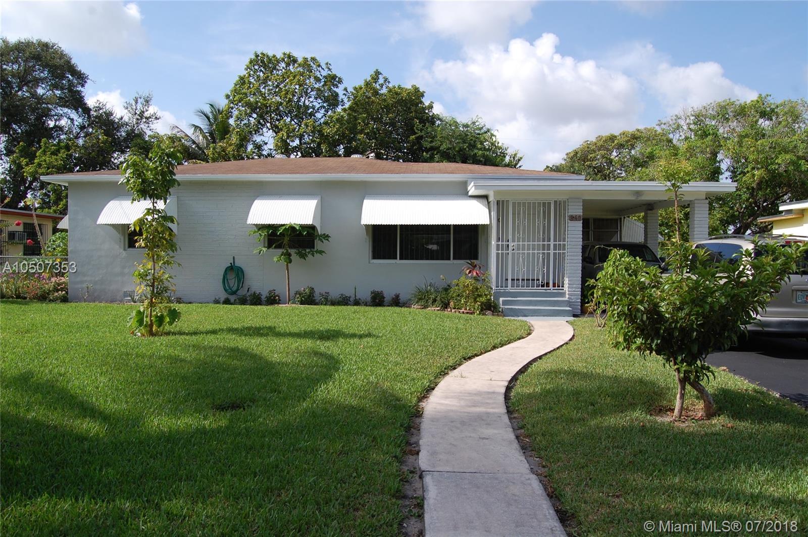 Cozy home in the center of beautiful North Miami boasting a lush enormous lot, beautifully landscaped greenery, boasting numerous fruit trees, long spacious drive way plus car port, freshly painted exterior, and interior, natural wood flooring throughout the home, featuring a large bright Florida room overlooking huge fences backyard. Big enough to build a pool and entertain. Great location with schools, leisure, and dining options within walking and driving minutes. Perfect starter home, present all offers!