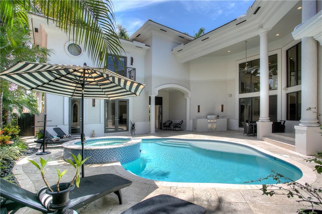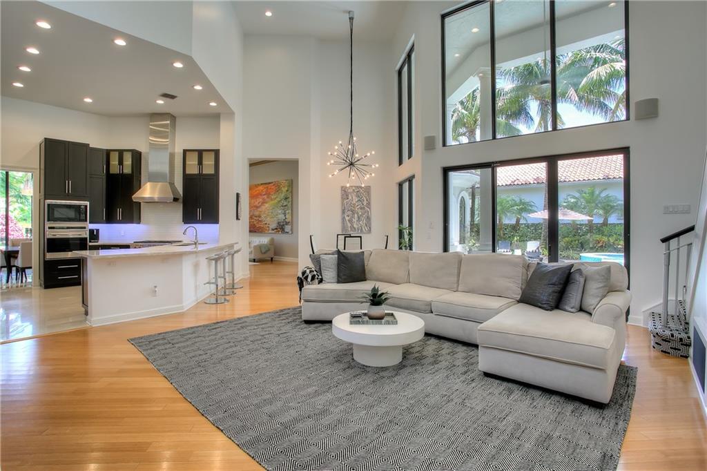 WOW! BEAUTIFULLY APPOINTED CONTEMPORARY TWO STORY COURTYARD HOME W 5 BEDROOM SUITES INCLUDING PRIVATE GUEST HOUSE W FULL BATH PLUS CHILDREN'S PLAYROOM*IMPACT GLASS THRU-OUT*CHEF'S KITCHEN W PROFESSIONAL SERIES SS APPLIANCES W GAS COOKING*UPGRADES GALORE INCLUDING NEW BATHROOMS*HARDWOOD & MARBLE FLOORING*WALK UP BAR W WINE COOLER*ENJOY EVENINGS W BUILT IN BBQ OVERLOOKING SOLAR HEATED POOL & SPA W MARBLE POOL DECK*LUSH LANDSCAPING & WATER VIEWS MAKE THIS HOME SOMETHING VERY SPECIAL*CALL FOR PRIVATE VIEWING*