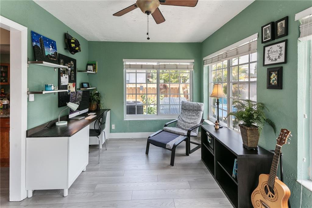 A beautiful well decorated and upgraded 3/2 home on a corner lot. New roof, AC, plumbing & electrical. Impact windows. Open floor plan with wood flooring, decorative fire place & feature wood plank wall in the living room. Kitchen cabinets were upgraded with lots of storage, granite counters, additional built ins & breakfast counter to dining room. Florida room has French door access to newly fenced rear yard. Master bath is nicely upgraded with free standing tub & glass tile and upgraded guest bath.
