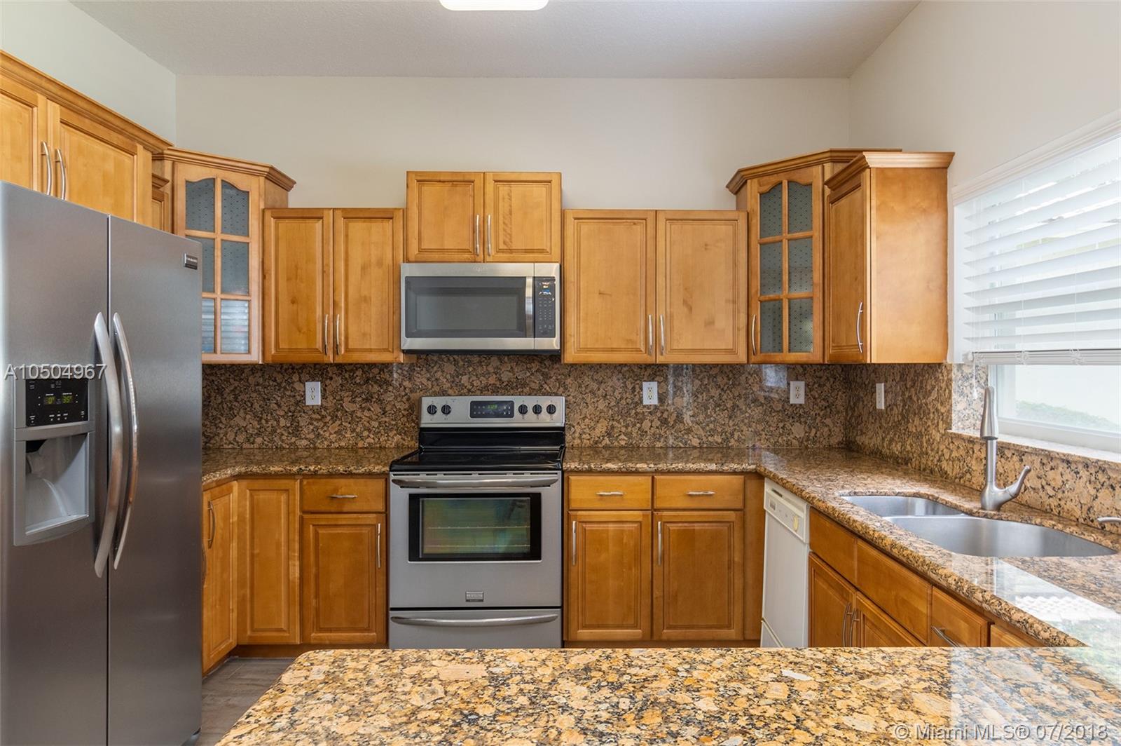 Magnificent 2 story home in Pembroke Isles, a resort like community in Pembroke Pines. Downstairs features an open, airy floor-plan comprised of a kitchen with granite counter-tops and warm wooden cabinetry, a large family room with sliding glass doors that open to a beautiful fenced-in yard and screened in patio, a spacious dining room and a half-bath. Lots of natural light. A beautiful staircase leads upstairs to 4 bedrooms. Master suite, with double doors and room for a sitting area has access to a screened balcony. Master bath with double sinks, soaking tub, separate shower and linen closet. All four bedrooms are carpeted with ceiling fans. A+ Schools nearby, zoned for West Broward High. Close to major shopping malls, restaurants & highways. HOA includes alarm, cable lawn and guard.