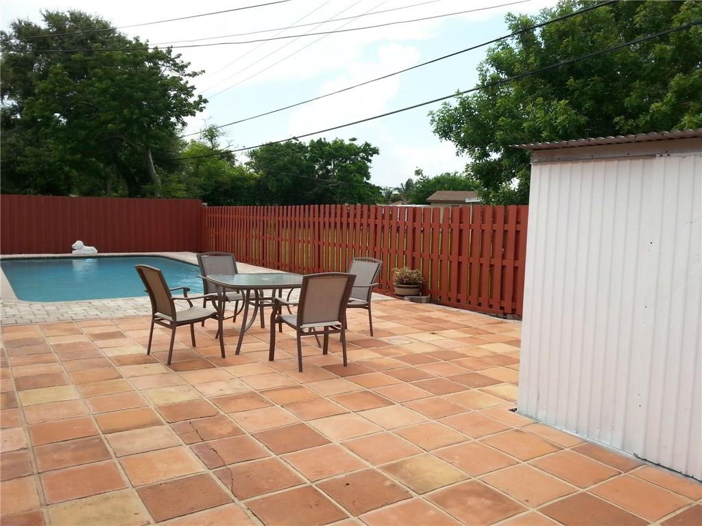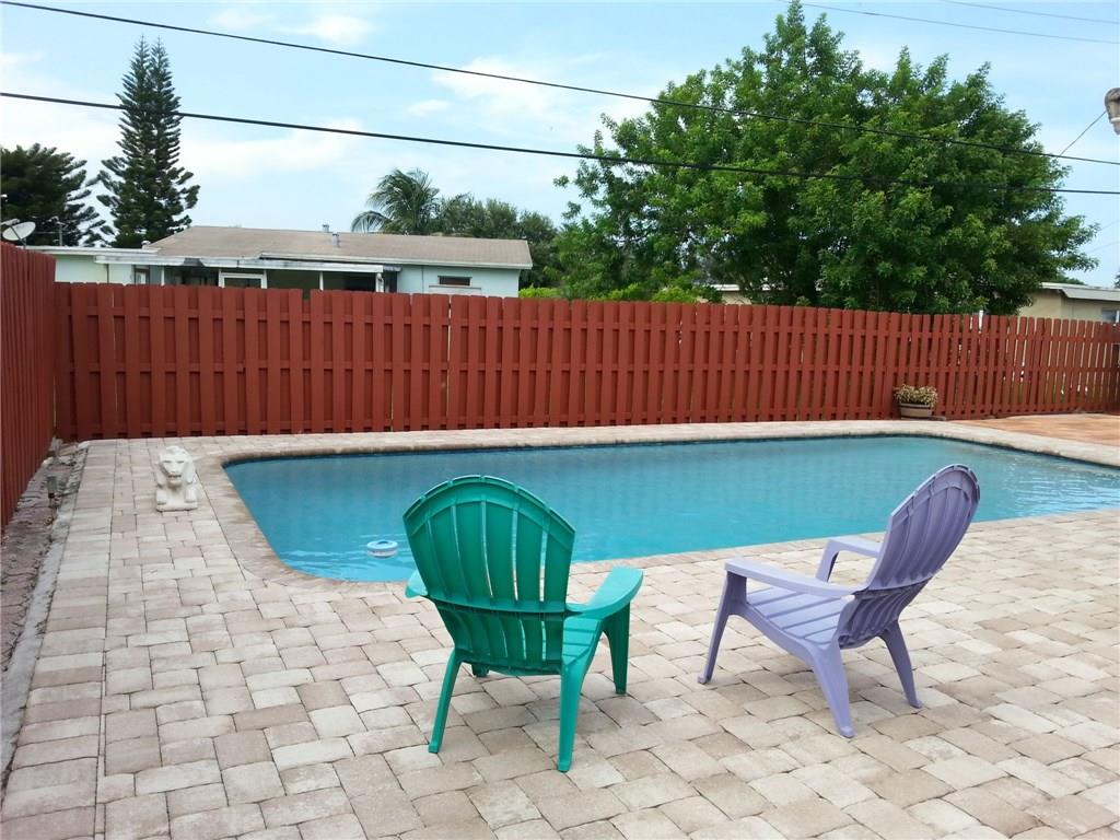 4/2 pool home on private lot in Bonnie Loch. No HOA. 4th bedroom is den. Garage enclosed by previous owner. Upgraded bathroom. Tiled kitchen & newer white appliances. Tinted windows, wood blinds, sprinklers, & hurricane shutters. Freshly painted interior. 30x15 open pool redone 5 years ago. Brick paver pool deck & Mexican tile. Entire yard is fenced in the back with privacy wood fencing & the front patio has cast iron front door. House has tile floors thru out except the Living room & 1 bedroom