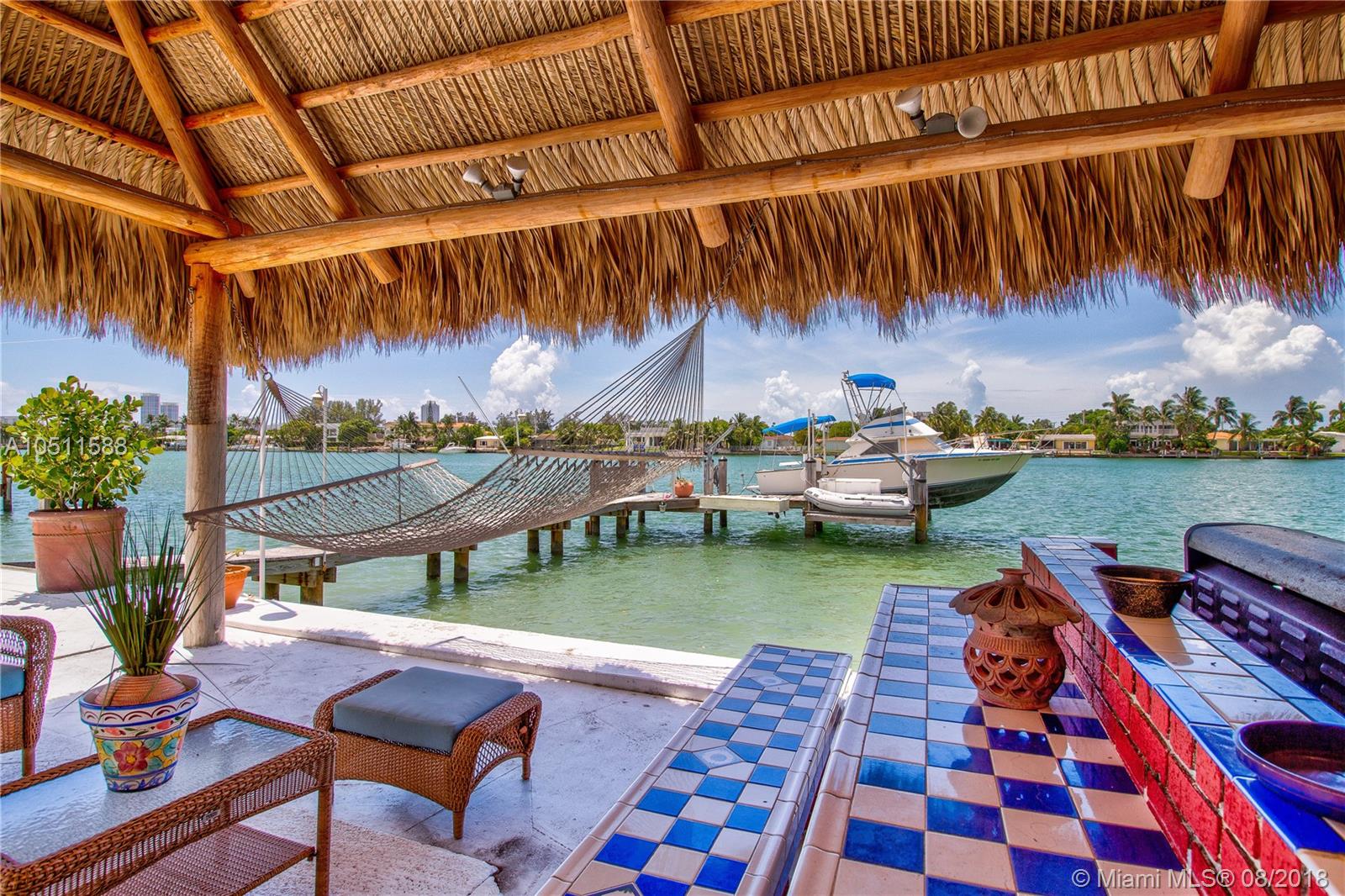Wide Bay Beauty on Biscayne Point; most sought after island on Miami Beach! 3407 square feet of relaxing tropical living, complete with pool, Tiki Hut, dock and boat lift. Southern views of bay and intracoastal, allow you to enjoy sunsets from your back yard. The entire property is gated, private and beautifully landscaped. Gourmet kitchen complete with gas stove and anything a skilled chef might desire. Biscayne Point is a gated private island just 8 blocks from the ocean and minutes to Haulouver cut by boat. This incredible island is centrally located between South Beach and Bal Harbour. The 16,000 lb. boat lift is currently occupied by a 1968 Bertram 28 ft. Classic that could be purchased separately. Call Victoria Federici for a private showing today!