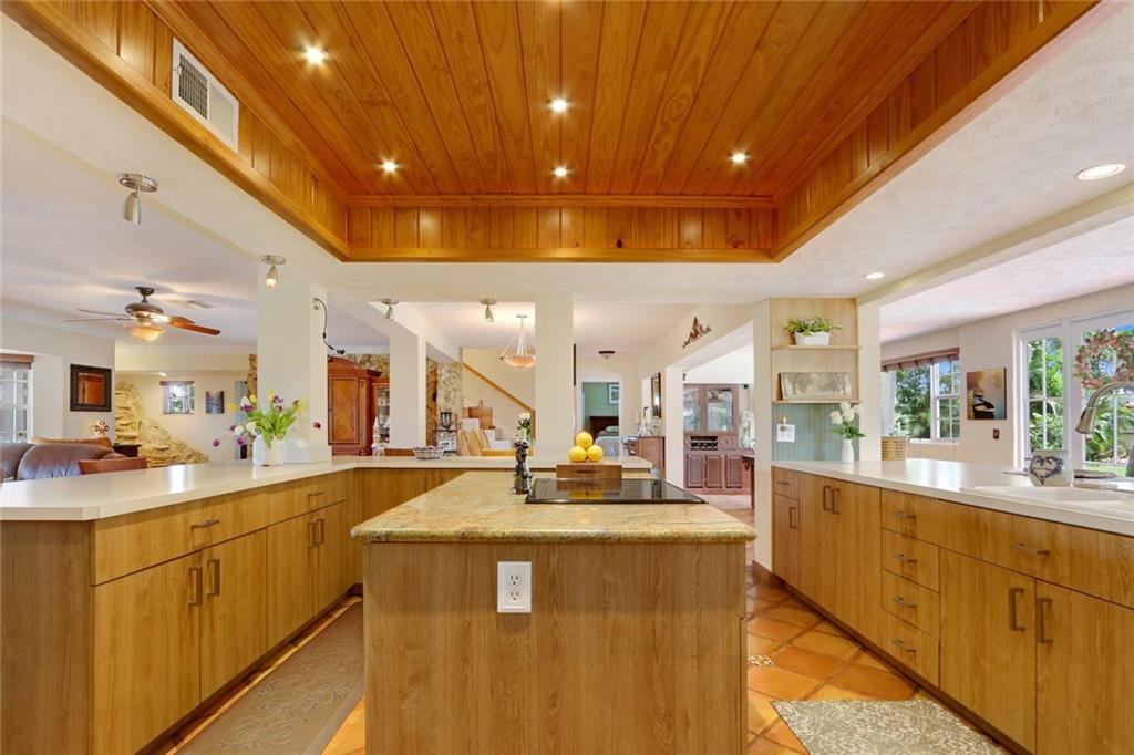 You enter this rarely available 2-story home with 5 bedrooms, 3.5 baths on almost an acre zoned Single Family or Duplex via a 230' private drive! Spacious floor plan, open kitchen, stainless appliances.Wonderful living area, bay windows, impact glass, family room, large dining area plus 2 bedrooms and 1.5 baths. Upstairs is a huge master suite with spa like bath and 2 more bedrooms and a bath. Beautiful landscaped with pool. Attached 2-car garage with separate 4 -car garage and shop. Close to Golf Course.