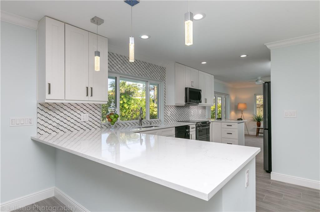 THIS IS THE ONE YOU'VE BEEN LOOKING FOR! Completely renovated 3 BR/2BA pool home. New kitchen w/Quartz countertops, white cabinets, high end Samsung appliances. New bathrooms with marble walls & floors, beautiful wood tile flooring throughout, crown moulding, high hat lighting. Walls & ceilings resurfaced with smooth finish, new window treatment in bedrooms, New washer/dryer and high efficiency water heater. Impact windows & impact french doors. Surge generator with electrical adaptor. 2 car garage.