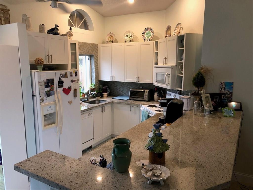 Renovated & Updated! This adorable 3/2 & 1-car gar in the desirable Country Isles Garden Home dev of Weston is cozy, comfy & warm. It has a courtyard ent & lush landscaped side & backyard w/wooden deck. Inside it has vltd ceils & kitchen wall has been taken down & replaced w/ large open counter w/ granite countertops & xtra storage. Master bth has been completely renovated as well. Barrel tile roof replaced in 2012, gar door is hurricane proof & all windows & doors have shutters. $2100. seller credit for appliances.