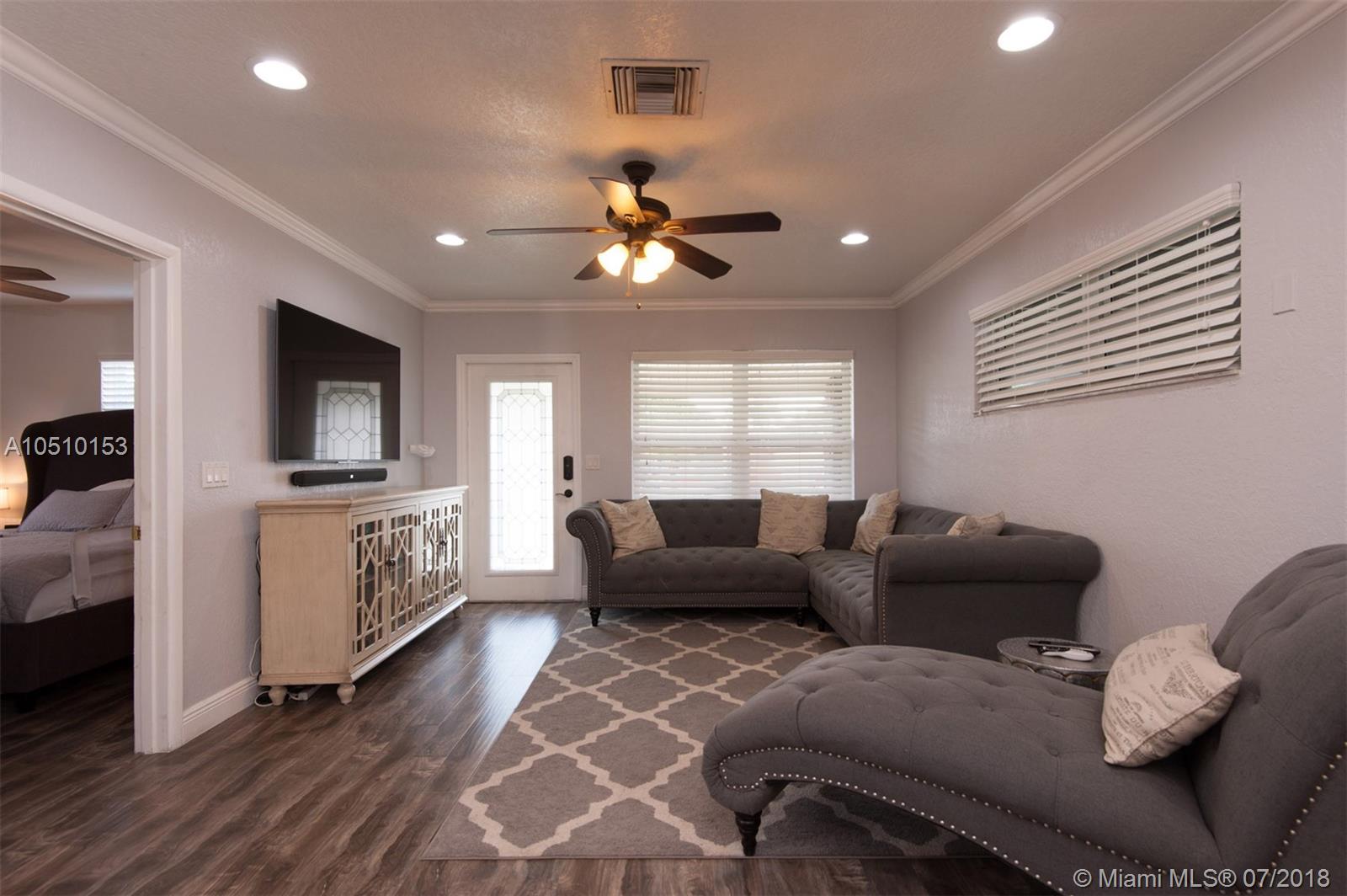 AMAZING OPPORTUNITY… HOMES LIKE THIS RARELY COME TO THE MARKET! Gorgeous Tiled Porch leads to Front Glass Door. Interior Features Tile & Wood Laminate Flooring throughout, Recessed LED Lighting, Crown Molding, Smooth Ceilings, Tasteful colors, Etc… Kitchen FULLY upgraded w/ White Cabinets, Granite Countertops, Glass Tile Backsplash, & HIGH-END S.S. Appliances. Spacious Master Bedroom comes complete w/ Walk-In Closet & Modern Bath. Home also features an open BONUS room w/ French Doors leading to back covered Patio. Nicely maintainable Backyard offers plenty of play room, storage Shed, & a Mango tree. Complete Home Security & Storm ready w/ IMPACT WINDOWS throughout. Main Roof replaced 2014, installed 2nd A/C 2017, & Drain Field replaced 2016. ONLY 4 HOMES FROM COMMUNITY PARK!