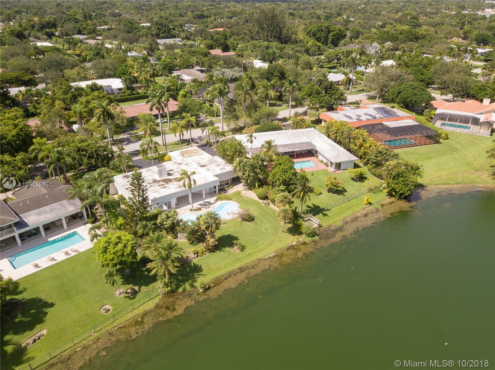 Perfectly located water front on spectacular Sheldon Lake in magnificent Pinecrest, within Palmetto School District. Unbelievably priced at $194 sq.ft. (4335 total building area). This Mimo style home is ready to be remodeled, originally custom built in 1968 with great spaces, natural stones, beautiful terrace and picturesque gardens, pool plus a lake view that will wow any homeowner. Ample size bedrooms, formal living and dining plus newer septic tanks, 2 a/c and sprinkler system. A blank canvas, make it your dream home!