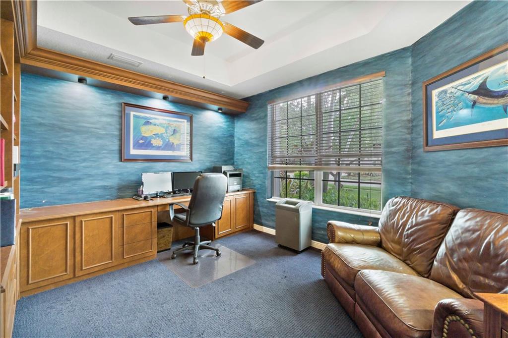 Stunning two story, 6 bedroom 4 1/2 bathroom + office home in the manned gated Isles East. Meticulously maintained home with Granite Kitchen, Cooktop Island, Breakfast Bar and Custom Cabinets. Built ins including custom office and bar. Downstairs boasts soaring ceilings, breathtaking views, and in-law suite. Upstairs features split floor plan for the bedrooms. New A/C systems and hot water heaters. Impact windows, accordion shutters and generator included. Backyard is fenced with huge patio, pool and spa.
